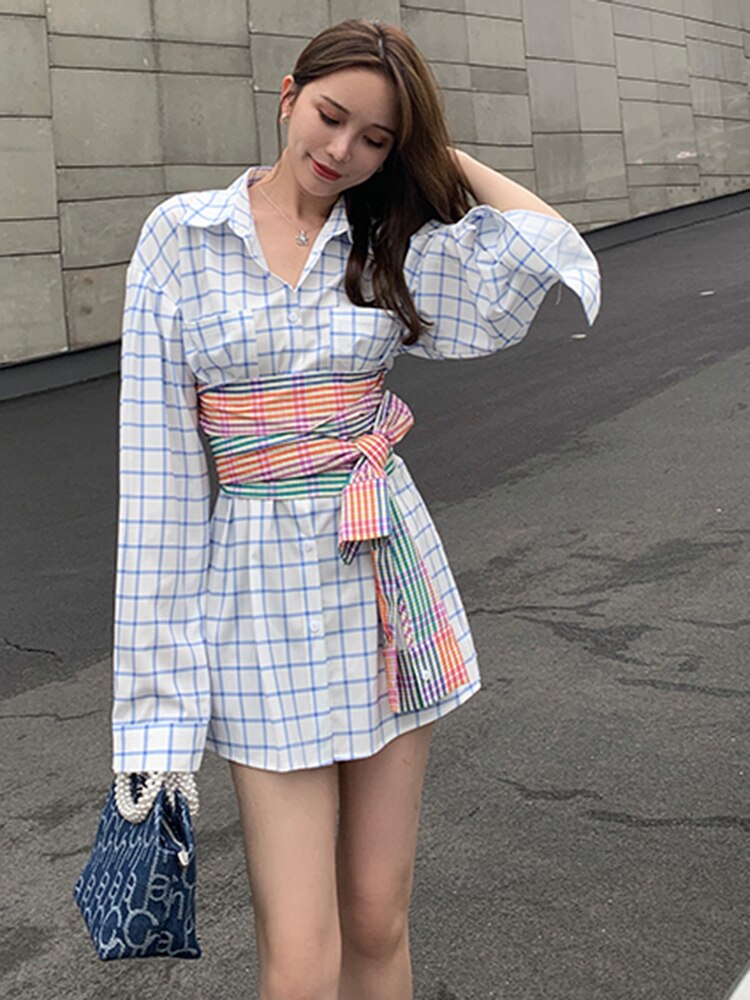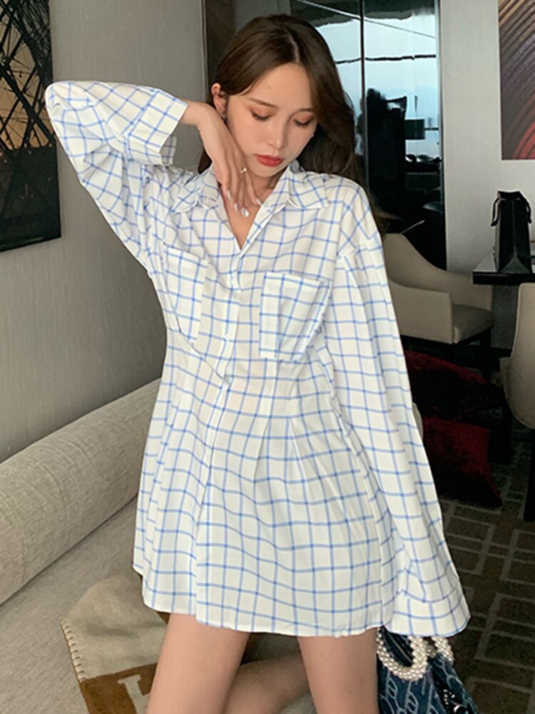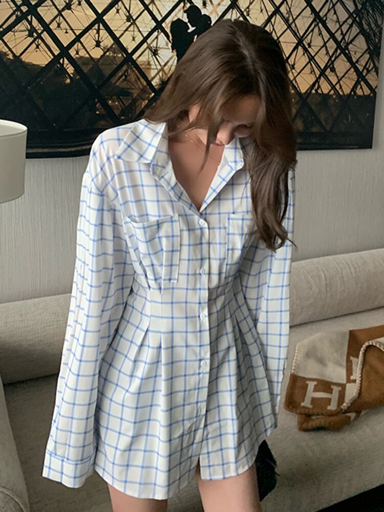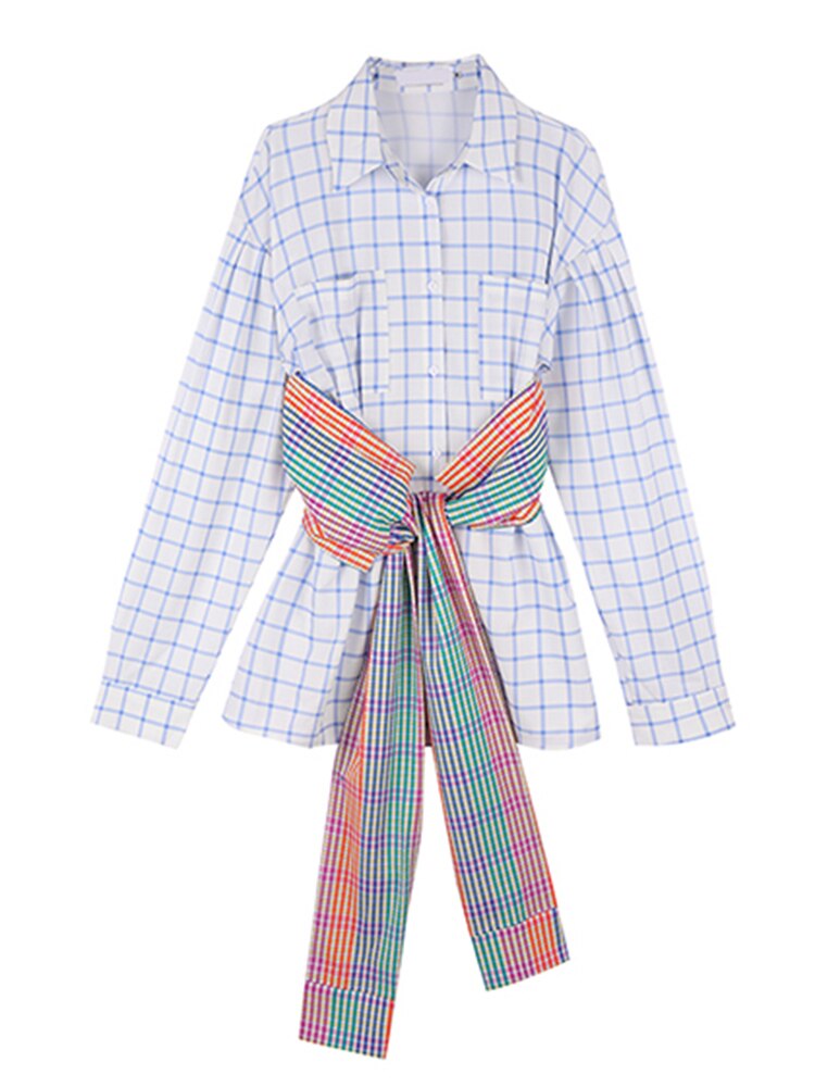 Fashion Shirt For Women Lapel Long Sleeve Plaid Colorblock