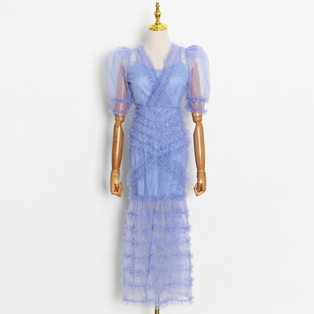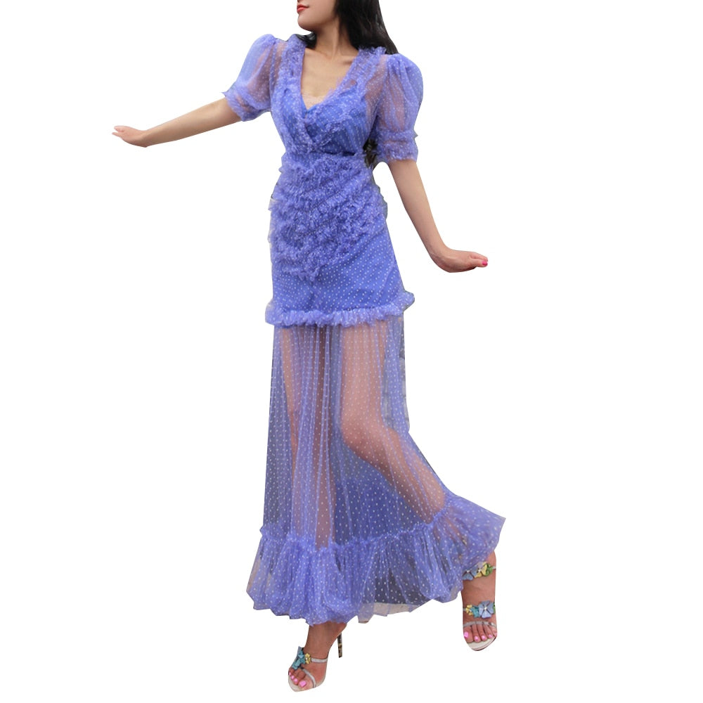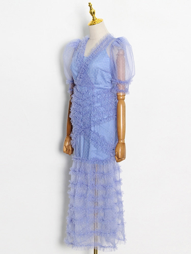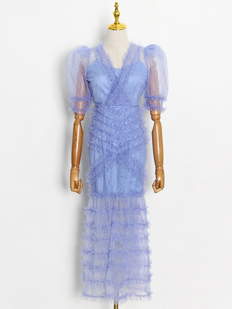 Lace Panel Dress For Women V Neck Ankle Length Dresses