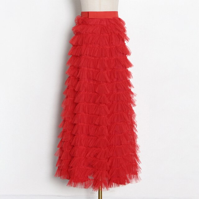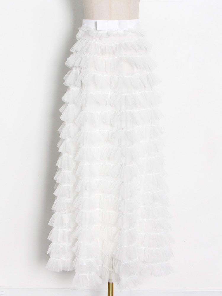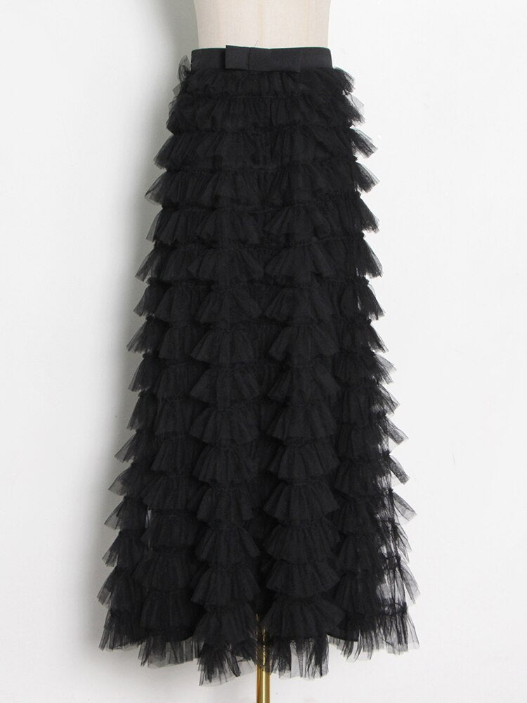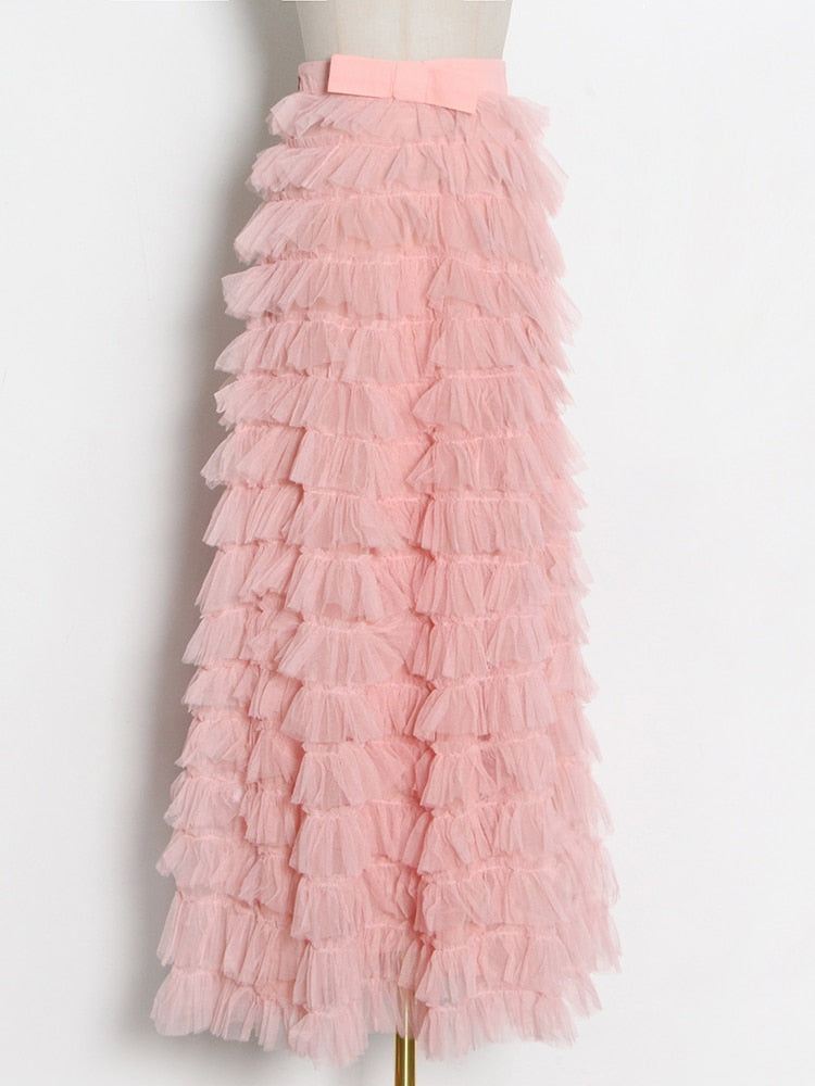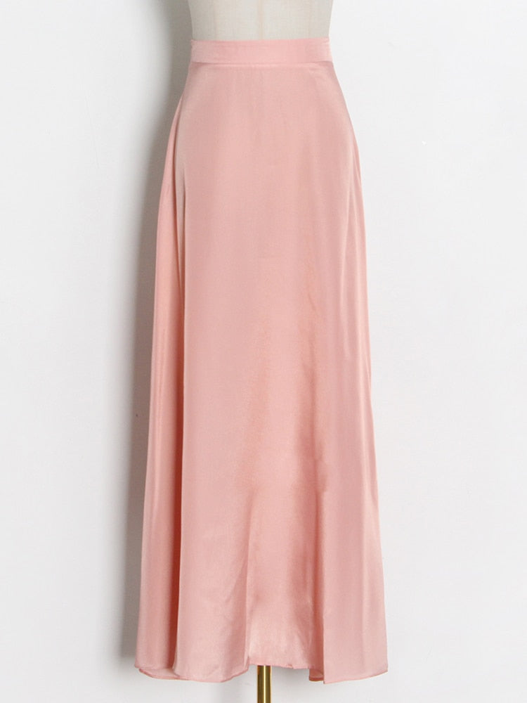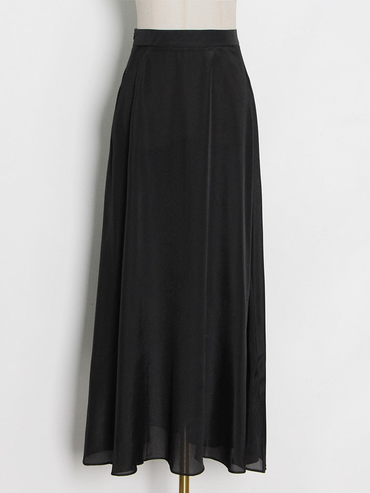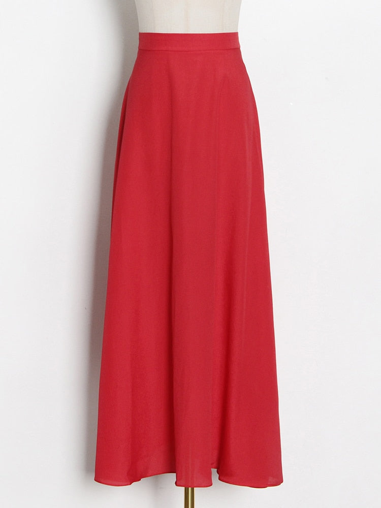 Streetwear Solid Color Ruched Long Skirts For Women