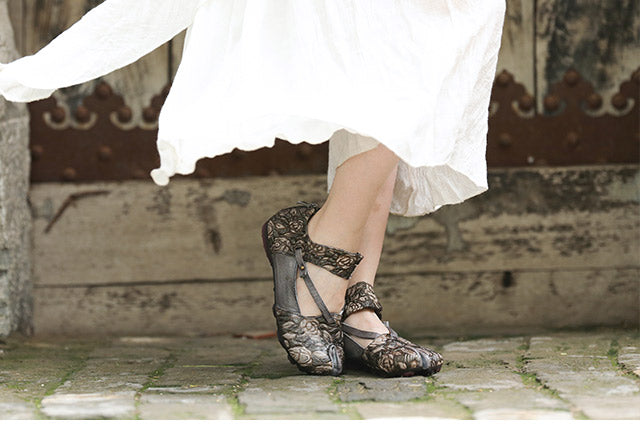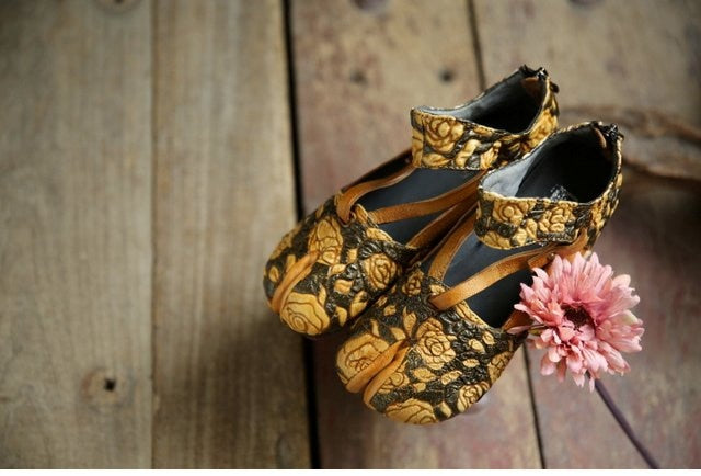Women Flats Embellished Flower Ballet Flats Genuine Leather Ankle Strap Women Slip On Handmade Women Shoe