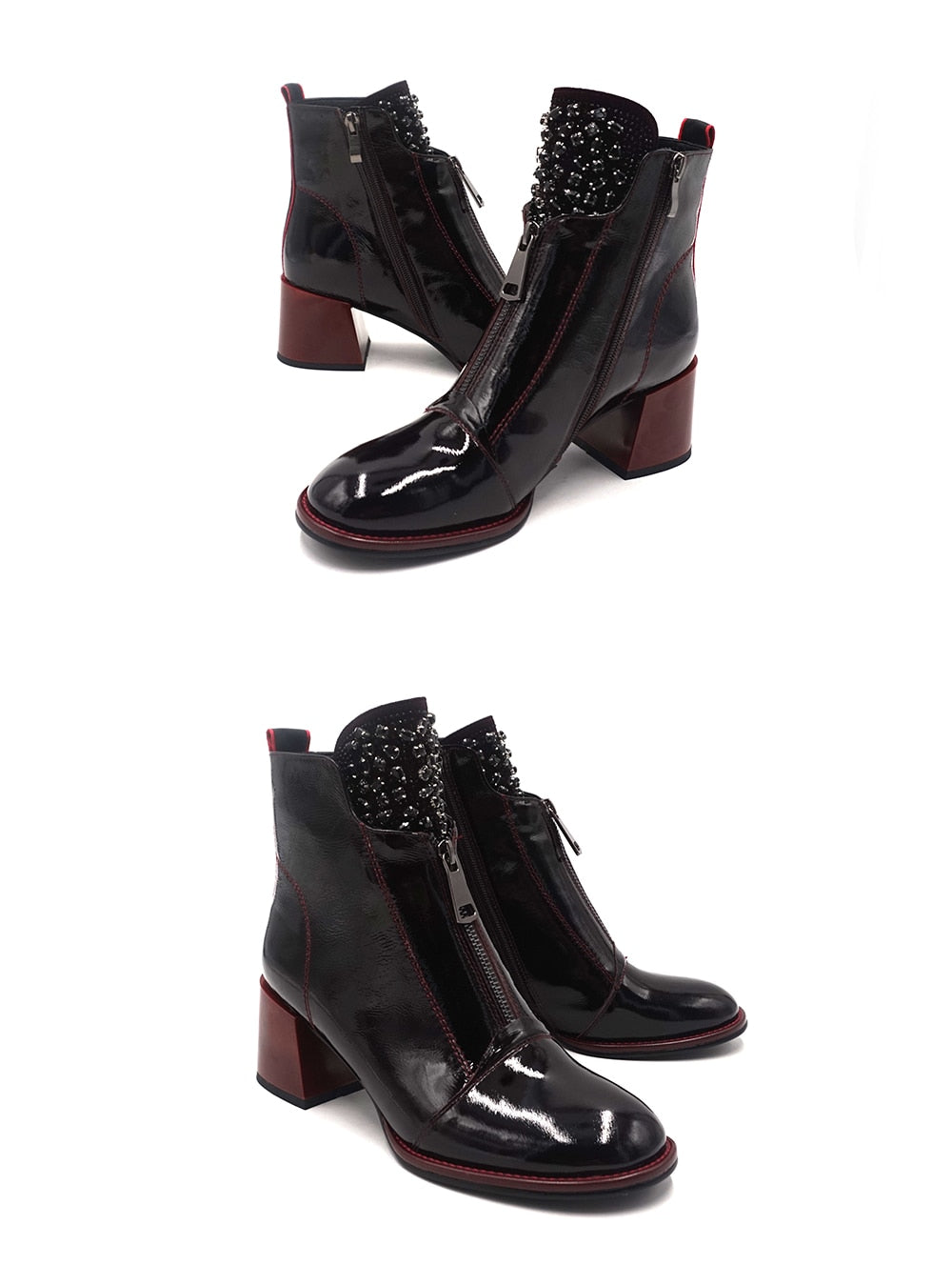 Spring Autumn Women Ankle Boots Thick Heel Patent leather Black Temperament Shoes Ladies High Quality Boots