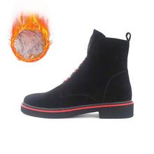 Wool Fur Women‘s Winter Shoes Warm Ankle Boots Women Shoes Genuine Leather Spring Autumn Square low Heel Lady Boot DX1