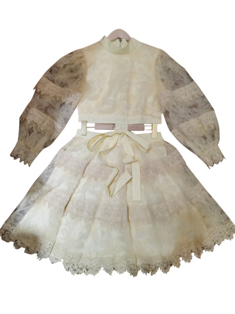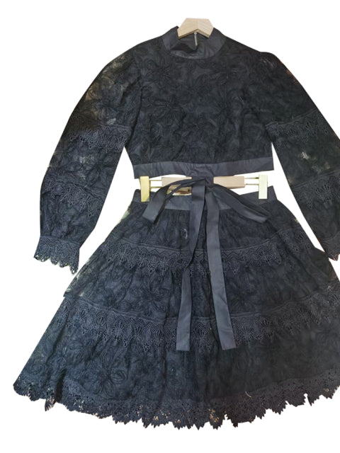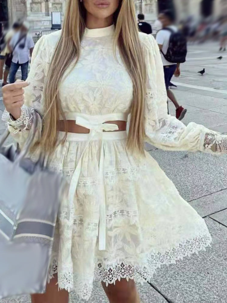 Casual Lace Panel Cut Out Dress For Women Stand Collar