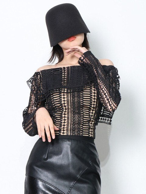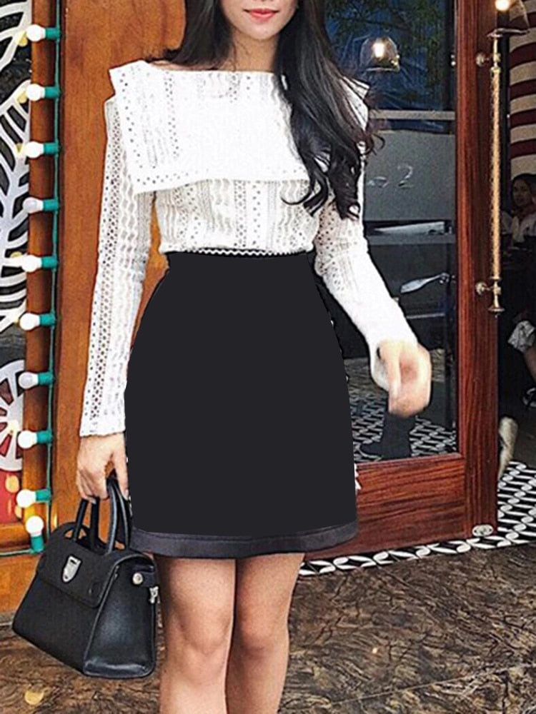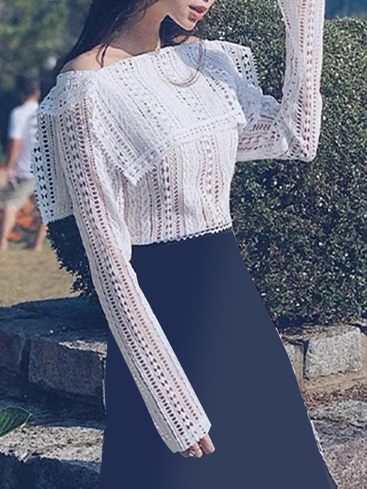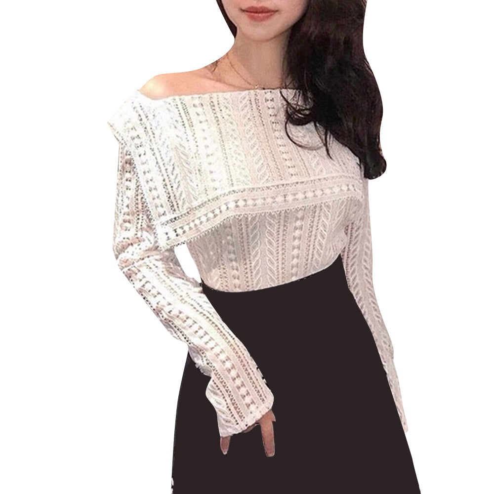 Casual Plain T Shirt For Women Slash Neck Loose Long Sleeve