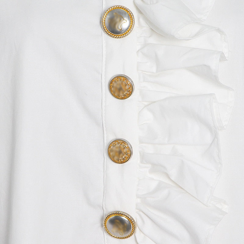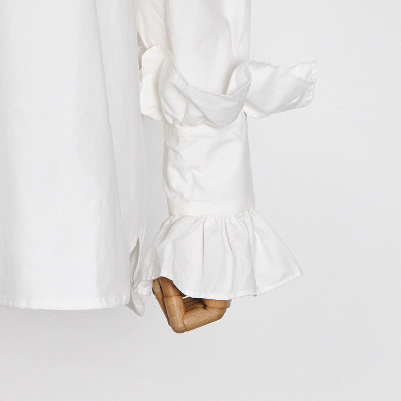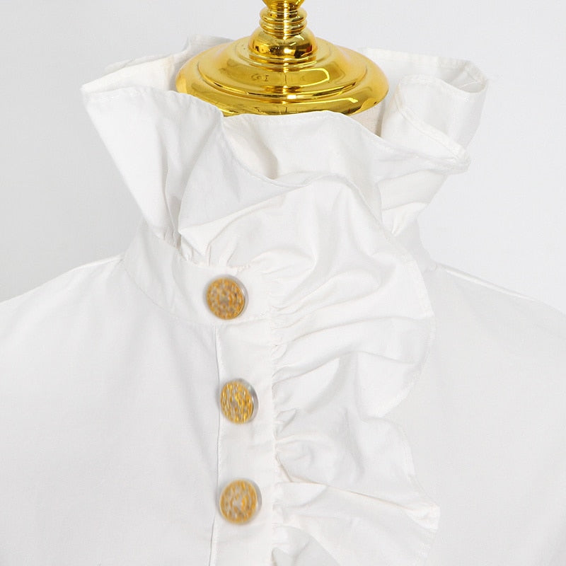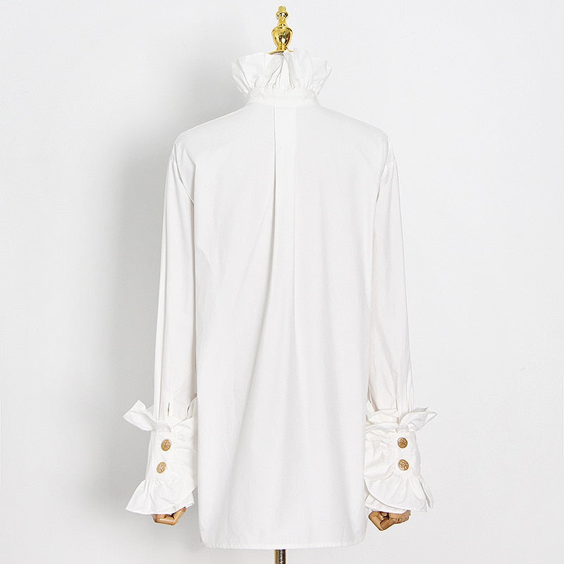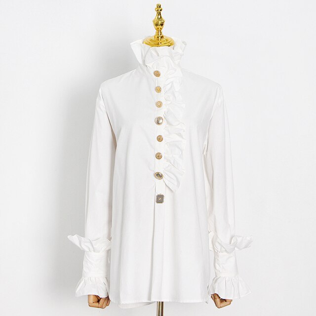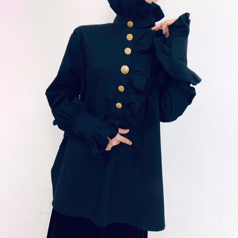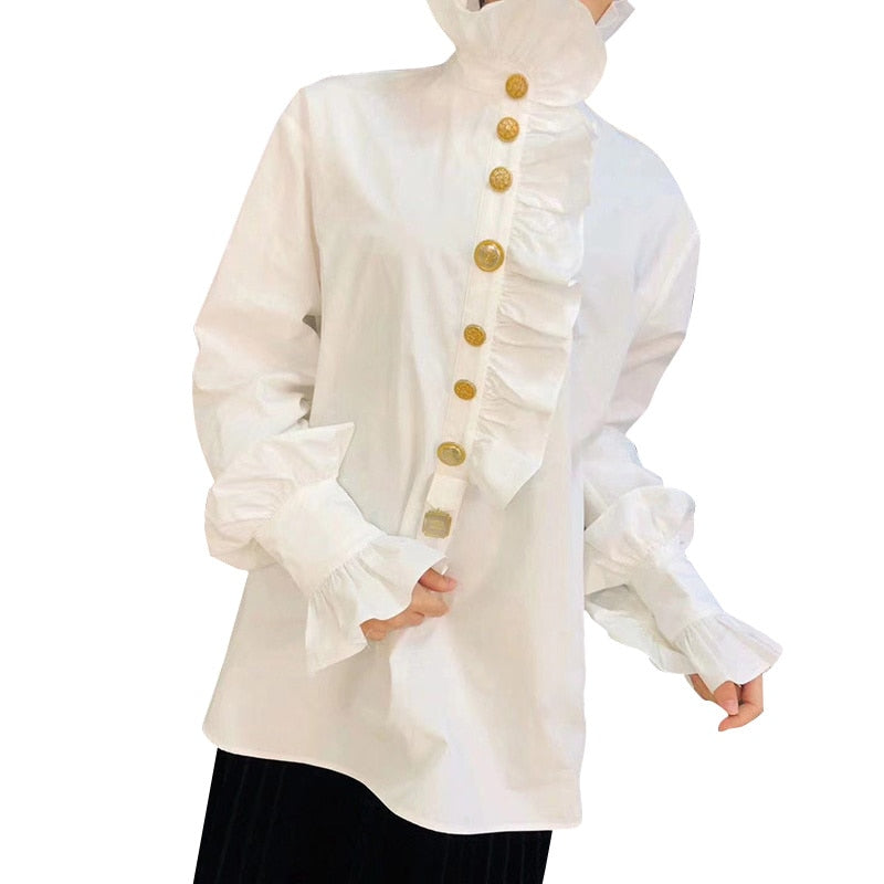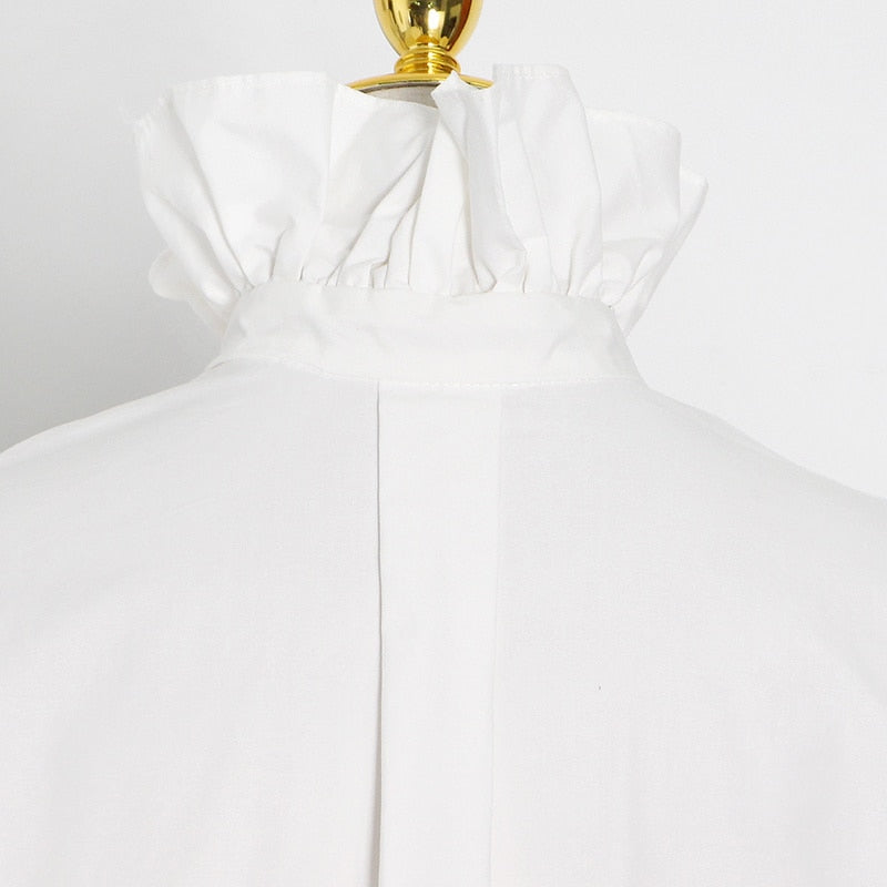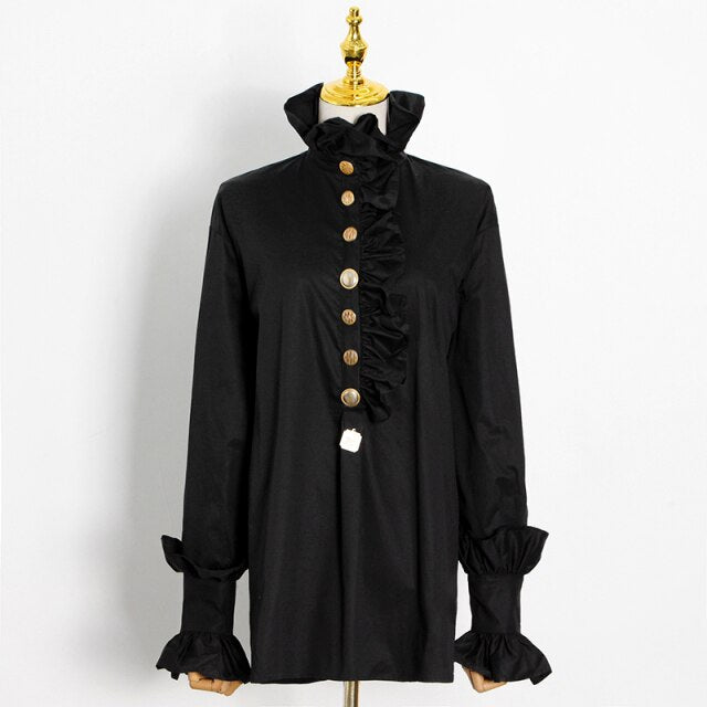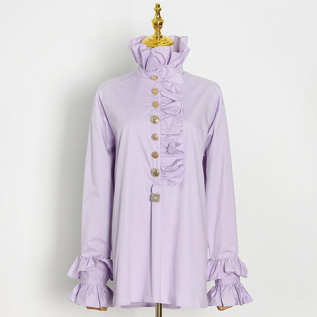 Patchwork Ruffle Shirt For Female Turtleneck Flare Long Sleeve