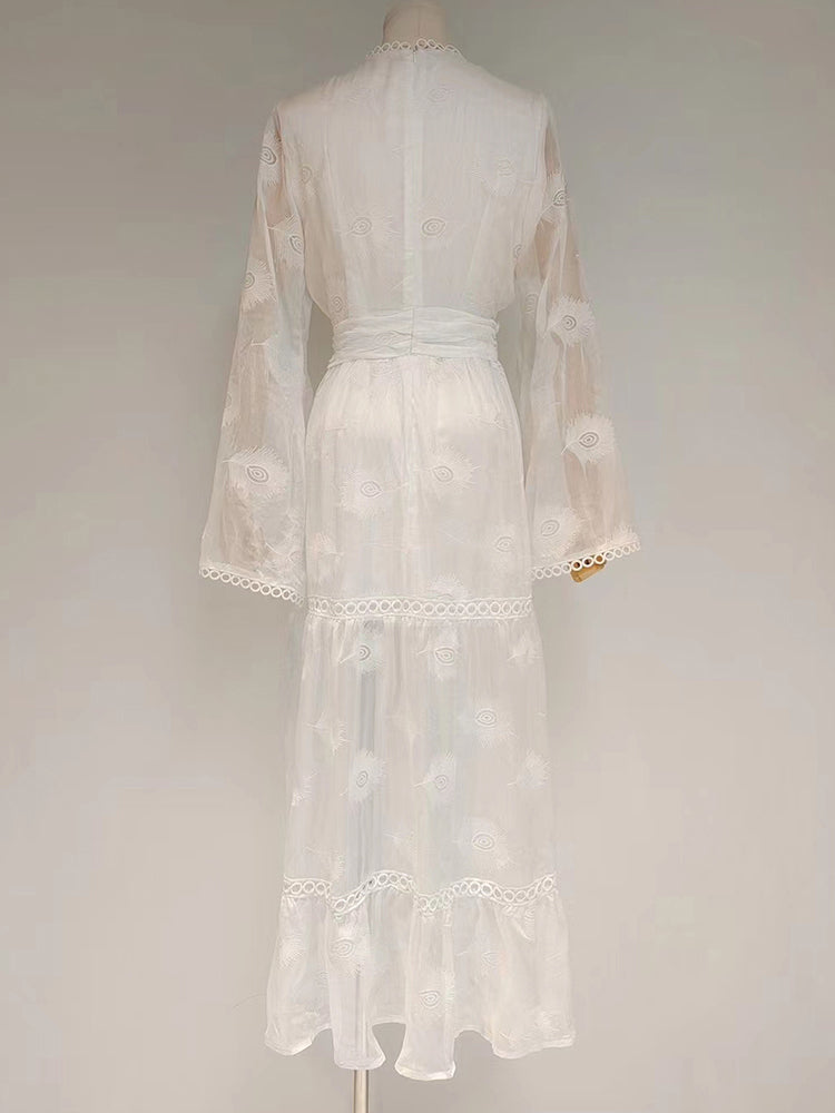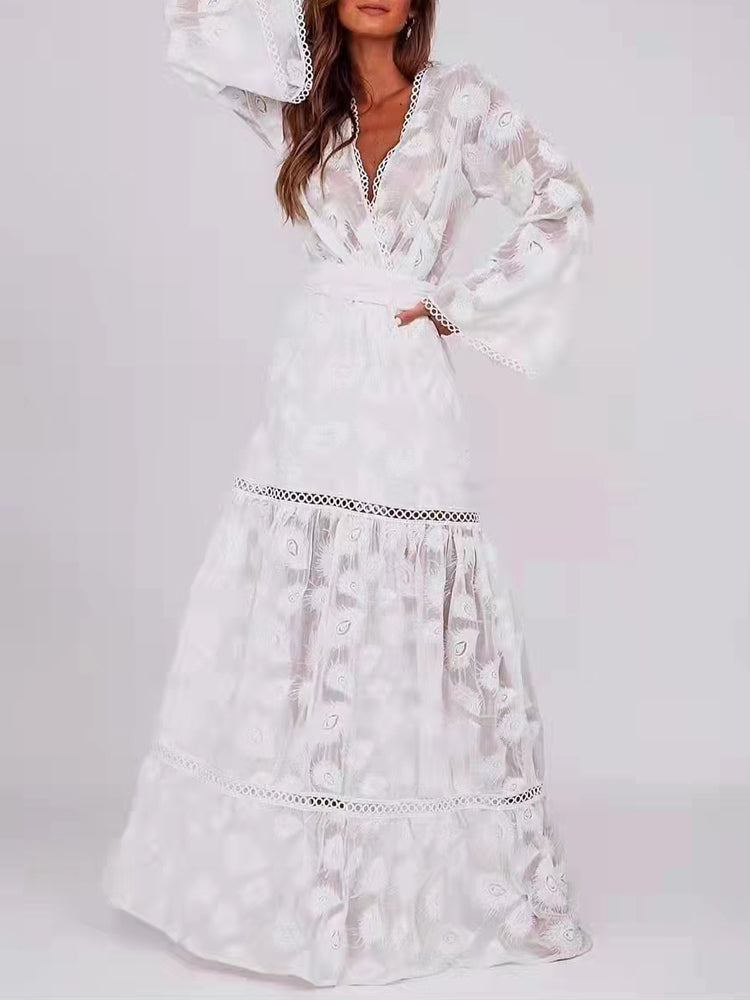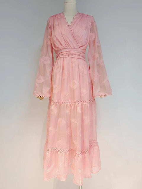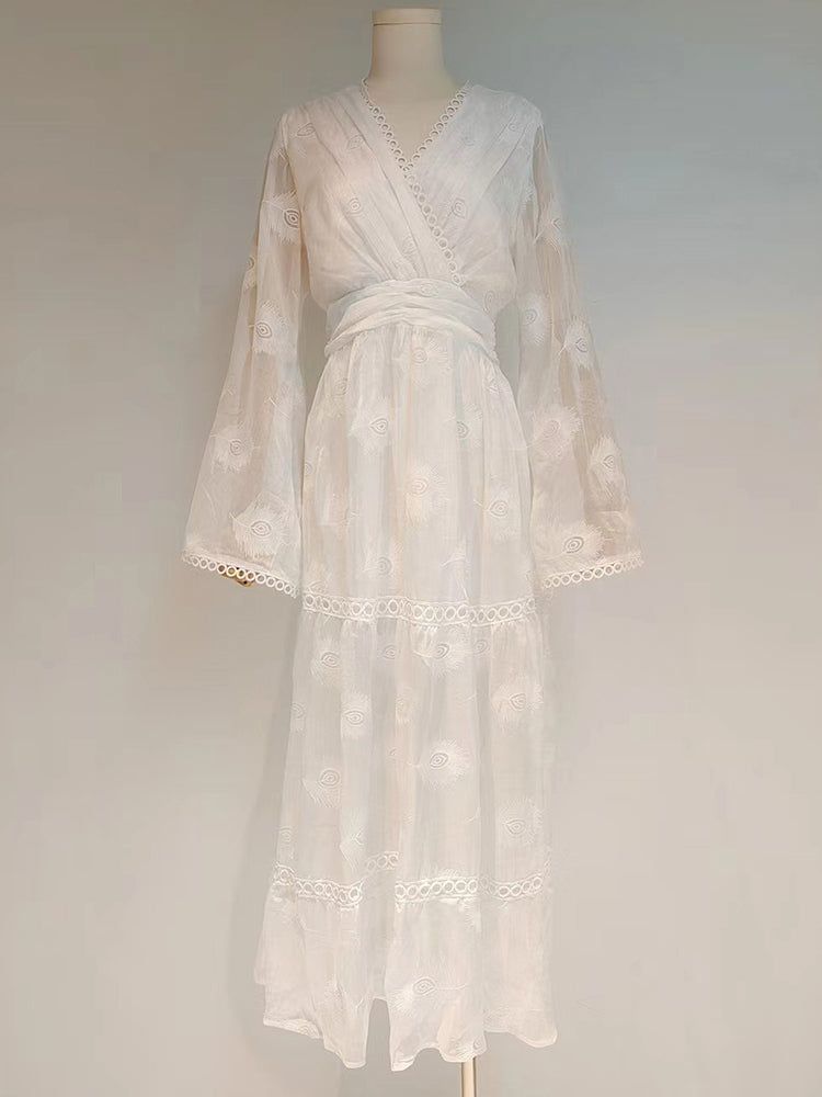 Vintage Casual Dress For Women V Neck Loose Long Sleeve