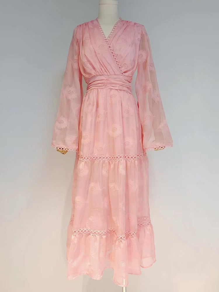 L:Shoulder:41cm,Bust:96cm,Waist:76cm,Hip:120cm,Sleeve length:62cm,Length:137cm