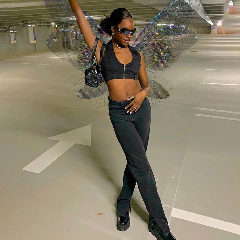 Vintage Fashion Denim Tank Top Women Hot Skinny Crop Tops