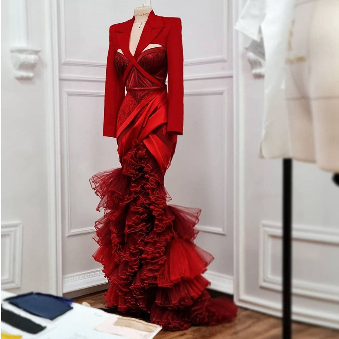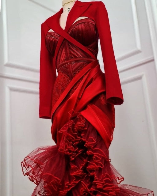Layered Puffy Tulle Mermaid Evening Gowns