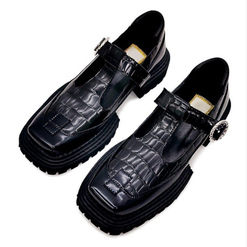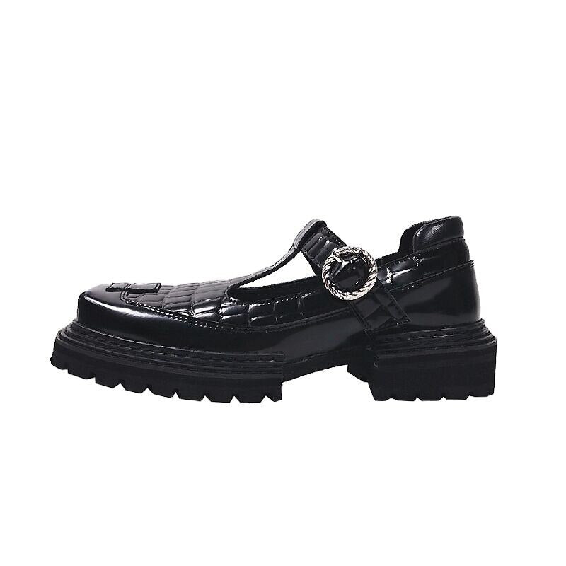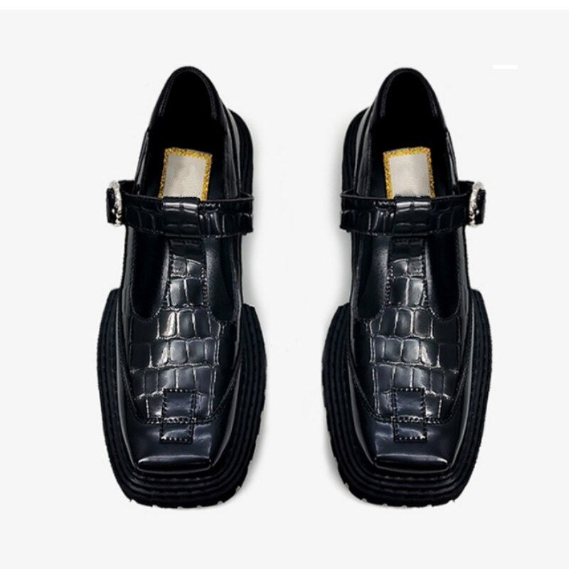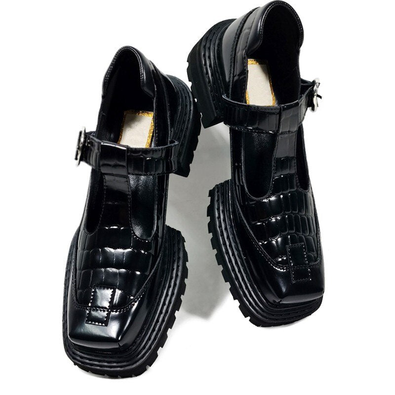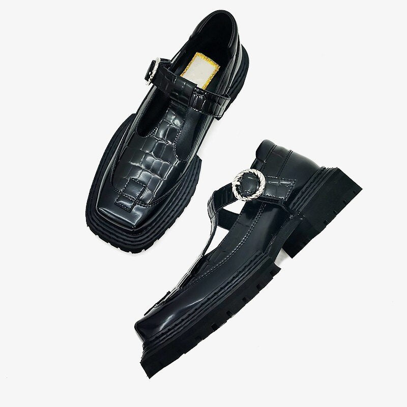 Office Lady Square Toe T-Tied Black Mary Jane Shoes