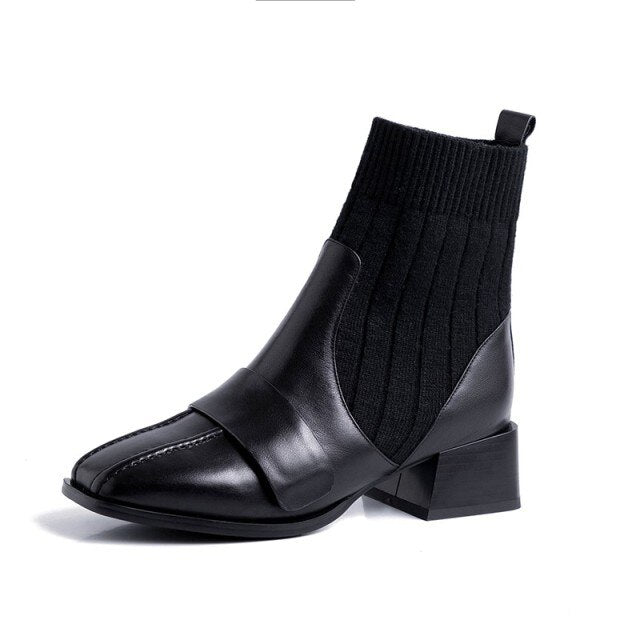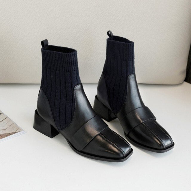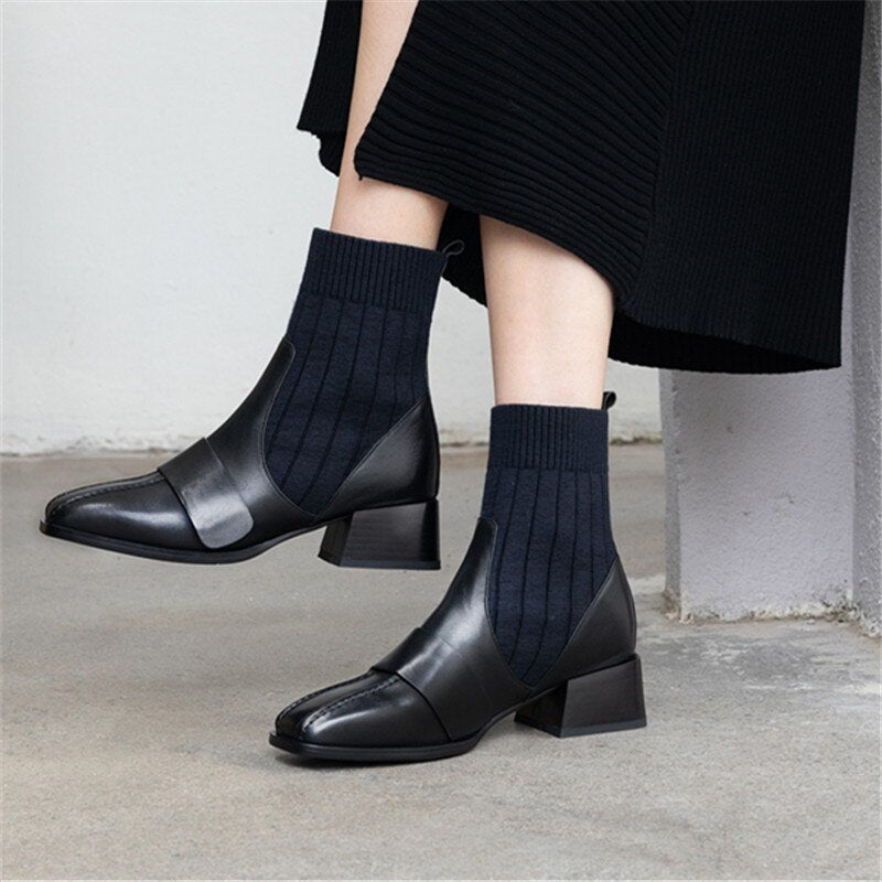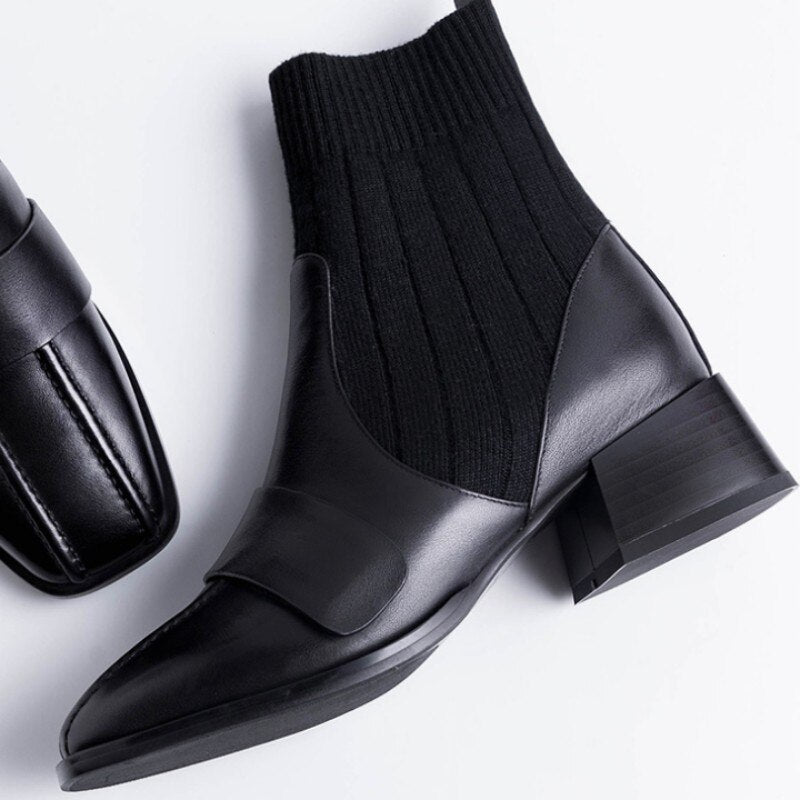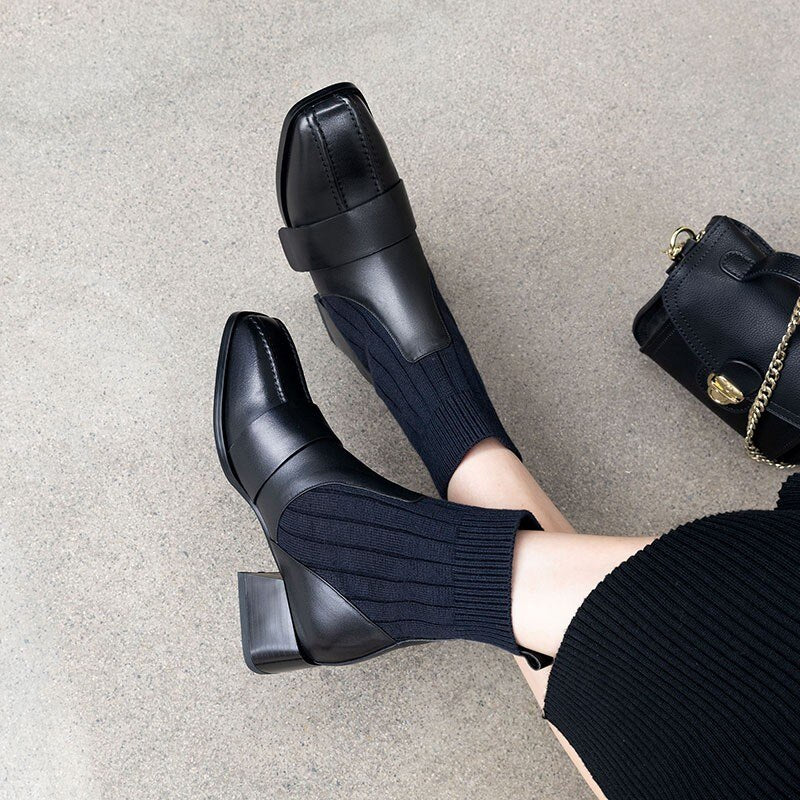 Block Heels Ankle Boots Ladies Slip On Loafers Office Work Shoes