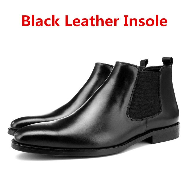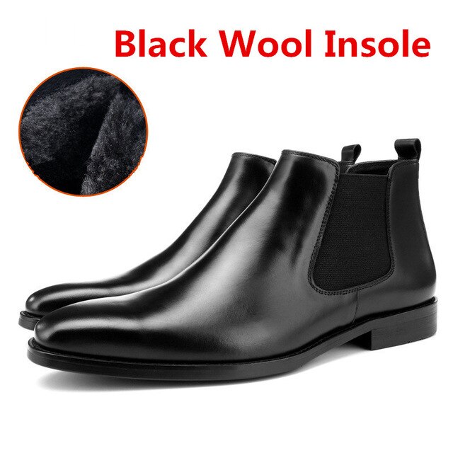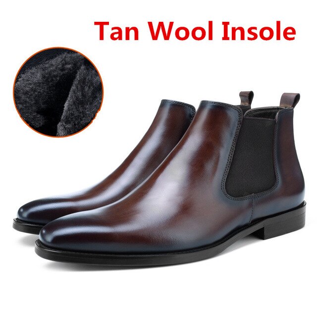 Warm Wool Insole Black / Tan Chelsea Boots Mens Ankle Boots Genuine Leather