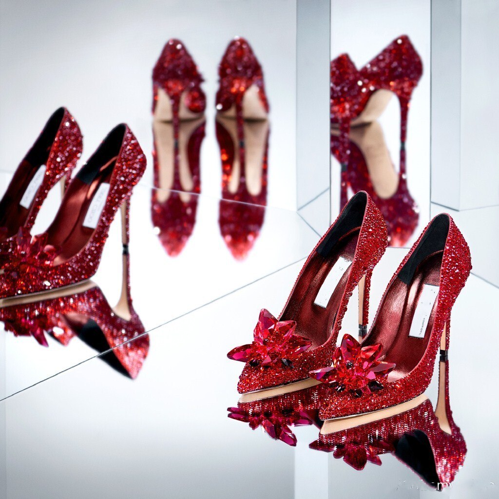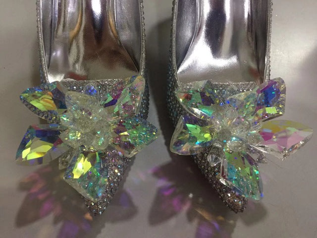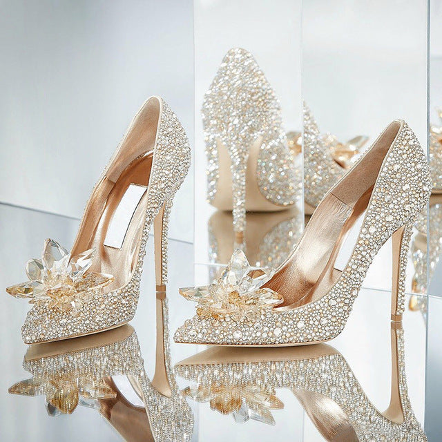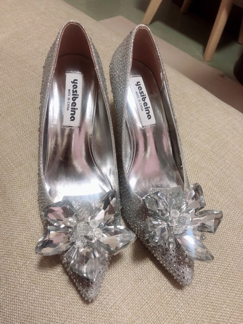 Wedding Shoes Woman Wedding Dress Bride Shoe Silver High-heeled Shoes Woman Fine With Princess Rhinestone
