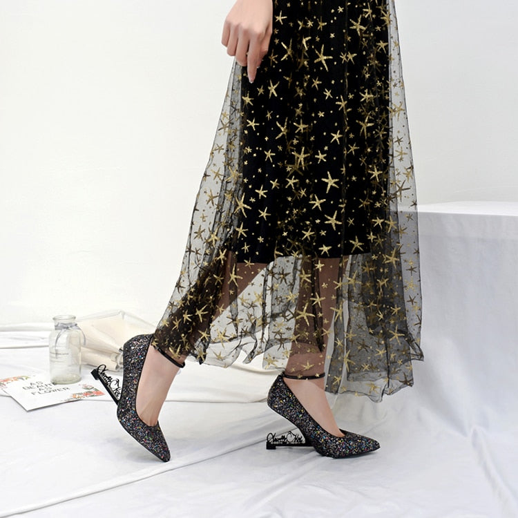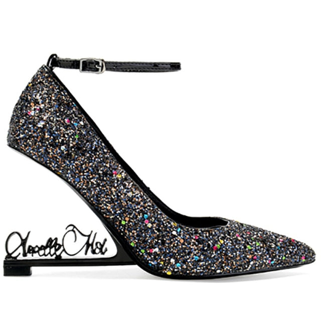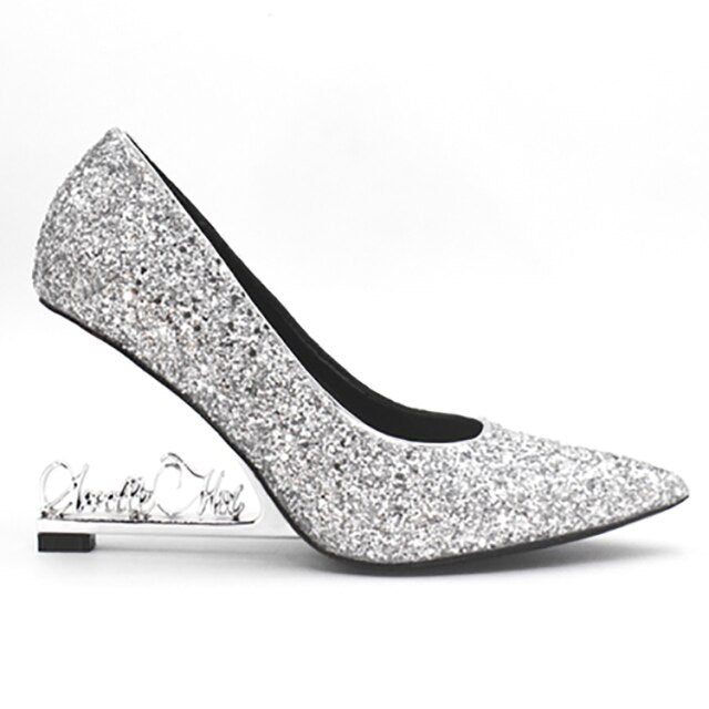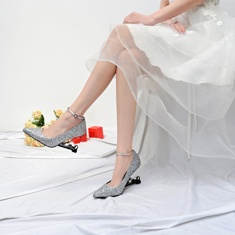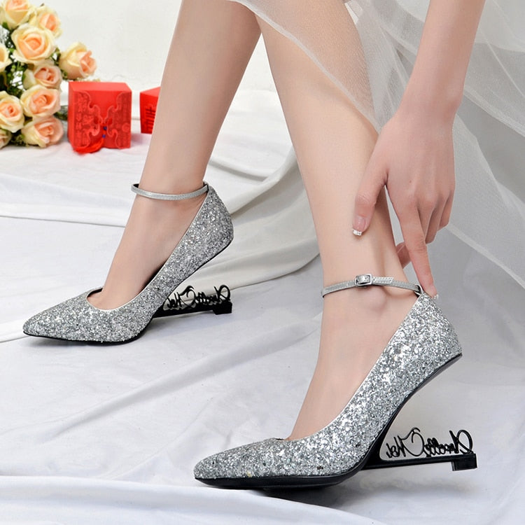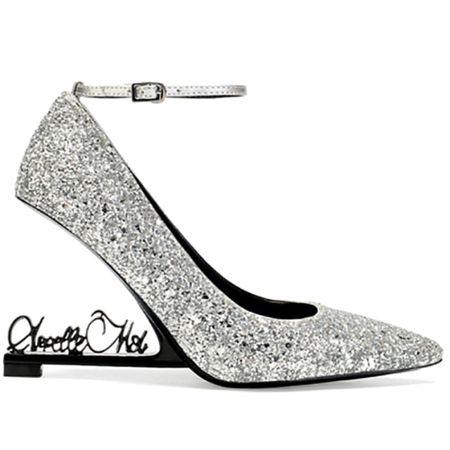 Wedge Heel Letter Pointed Sexy Catwalk Wedding Shoes