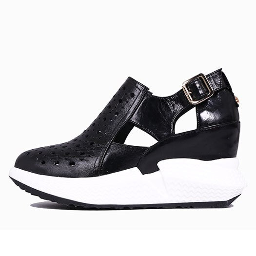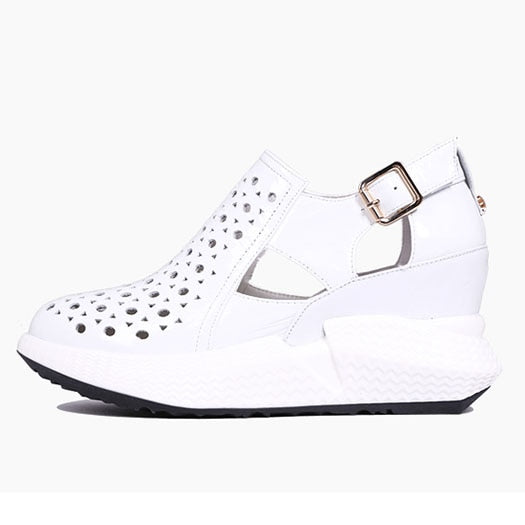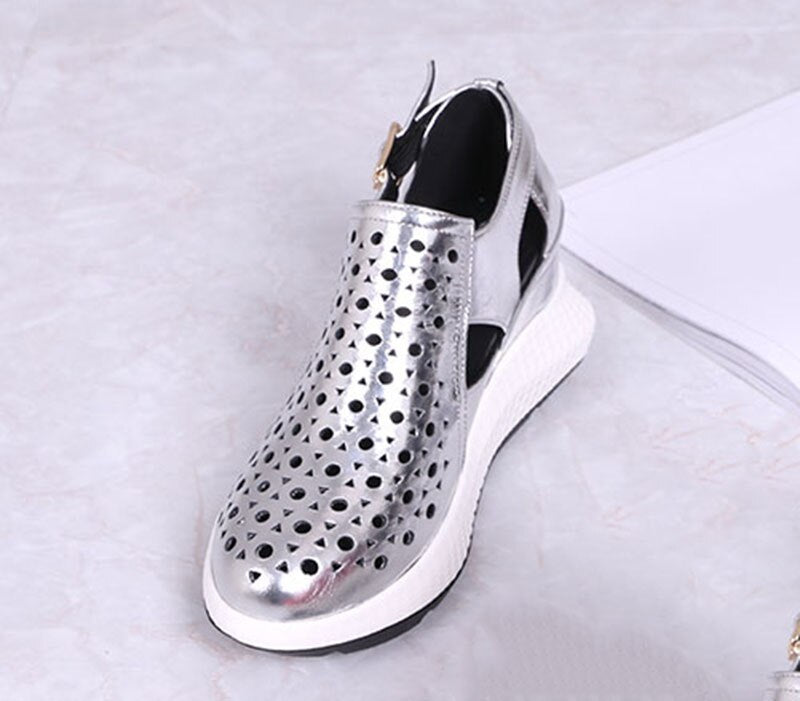 Wedge Pumps High Heels Metallic Sandals Red Patent Platform Shoes Women Genuine Leather Casual Creepers Harajuku Silver Round