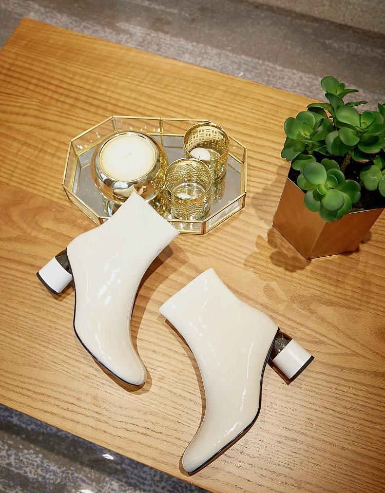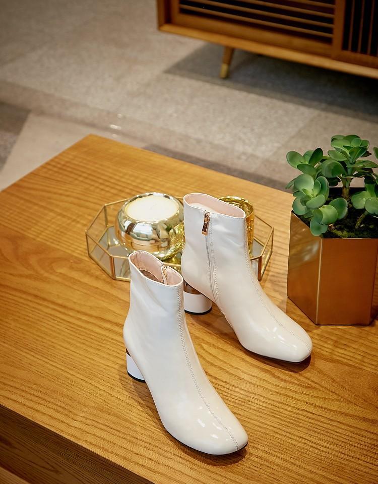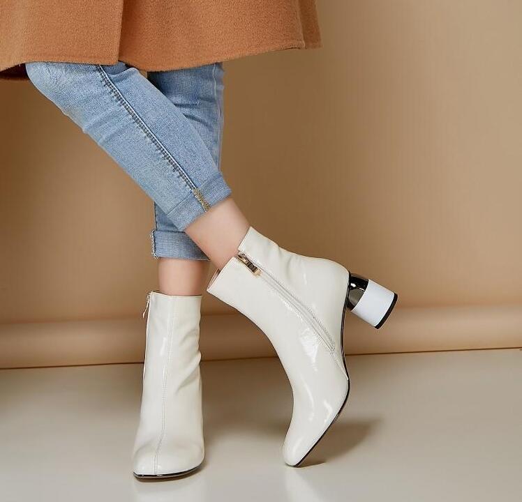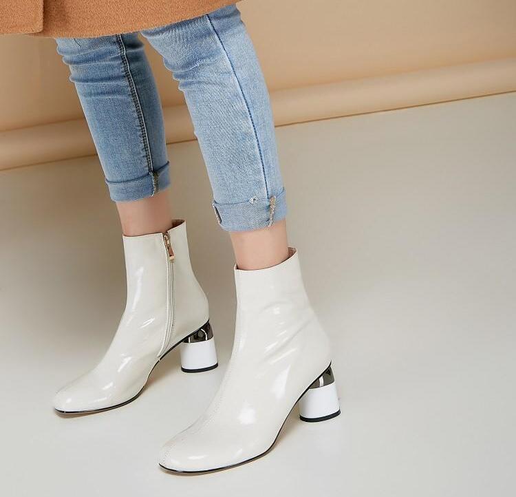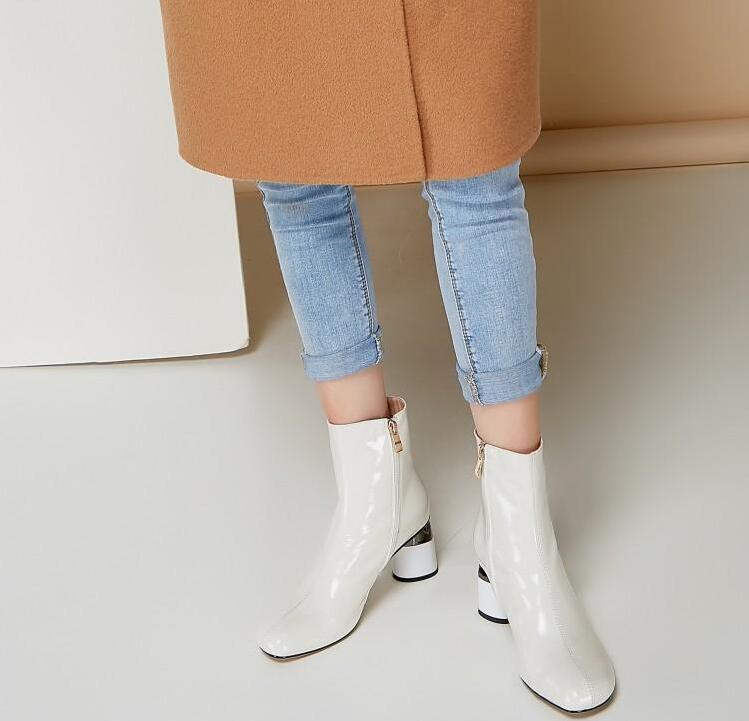 White Patent Leather Women Boots Short Autumn Botas Mujer Ladies Outside Winter Footwear 6cm Round Heels Chelsea Boots Woman
