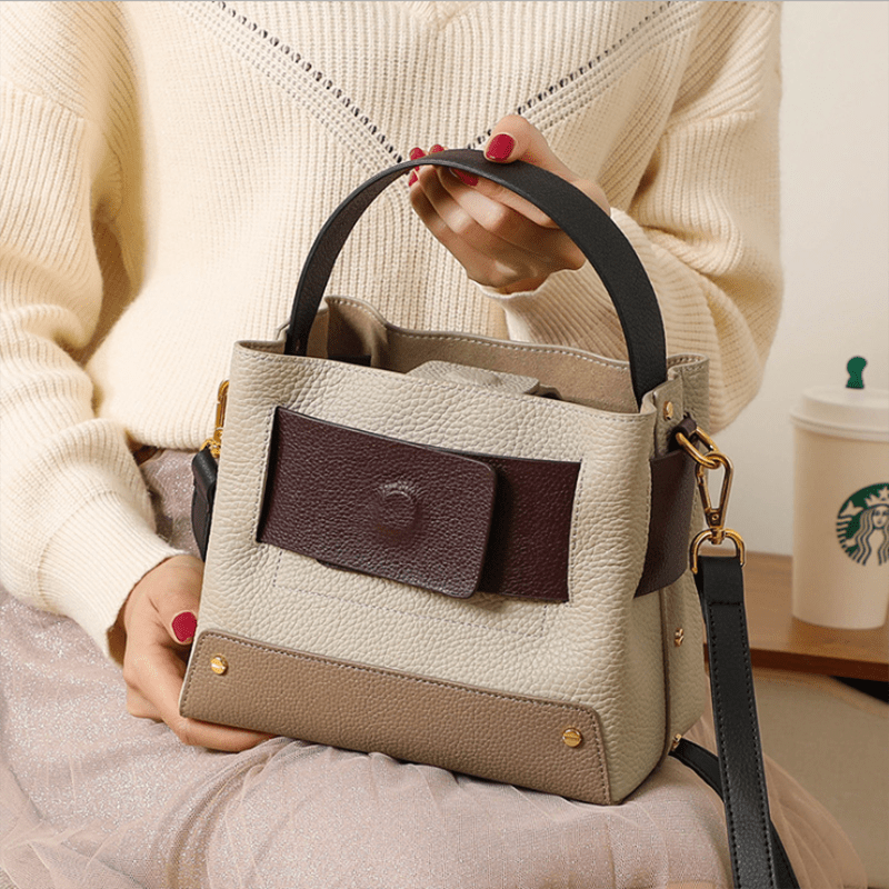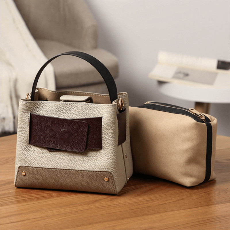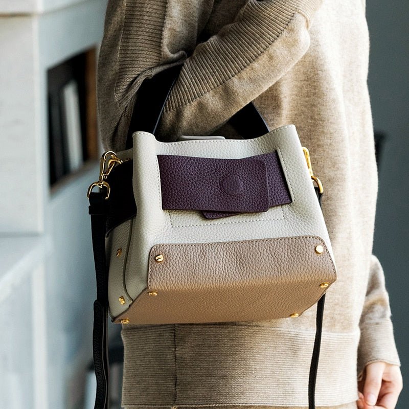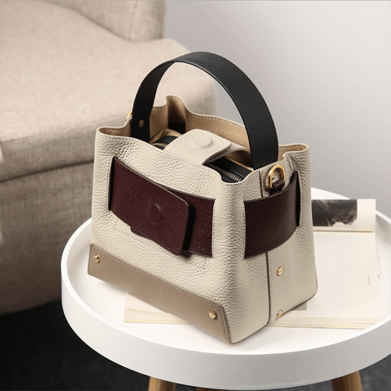 Wide Handle Natural Cowhide Leather Ladies Shoulder Bag