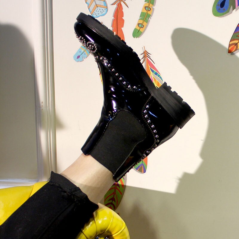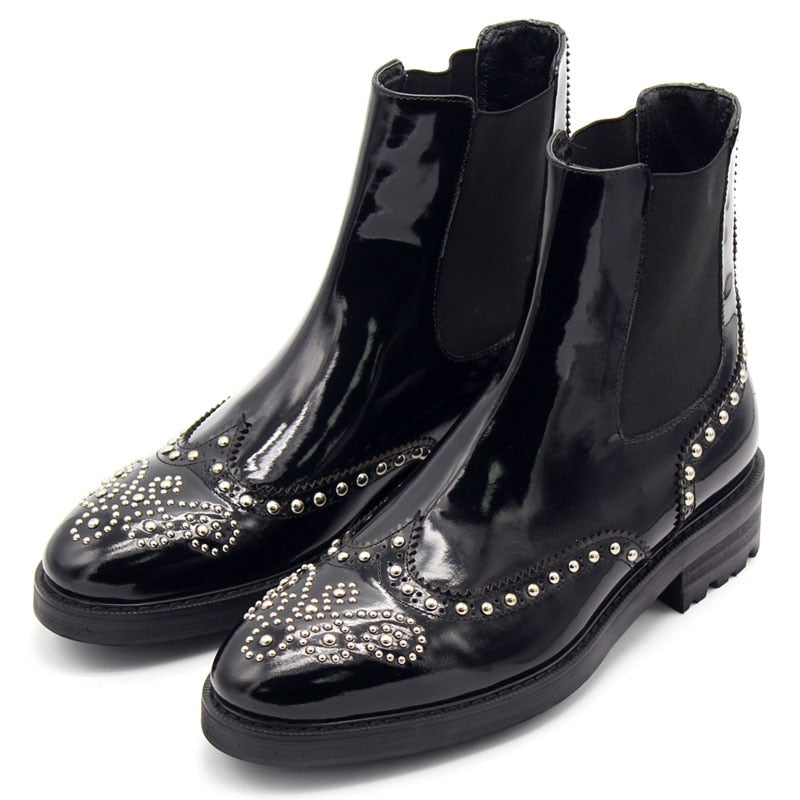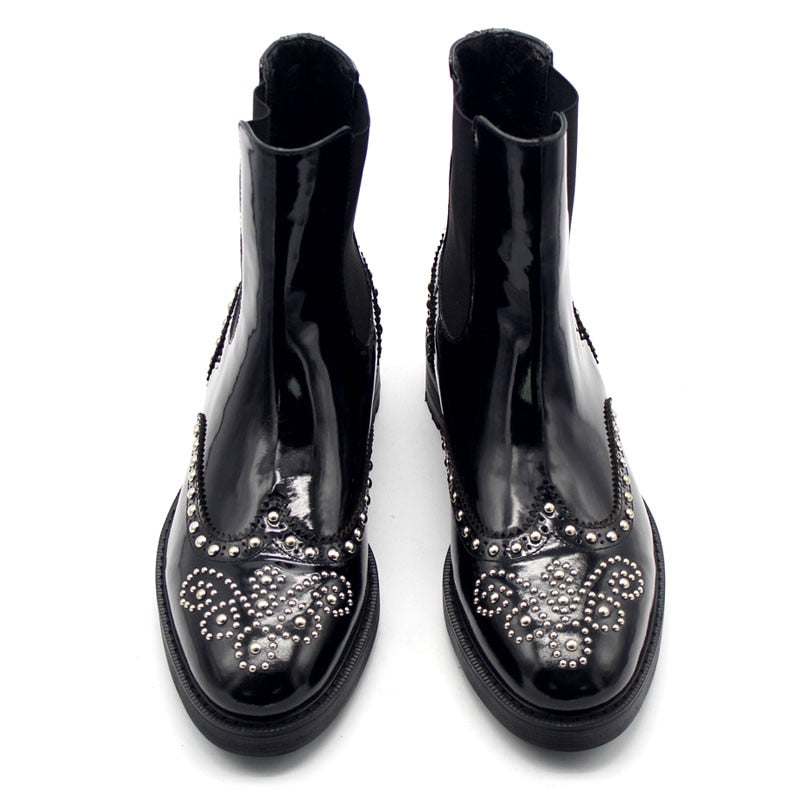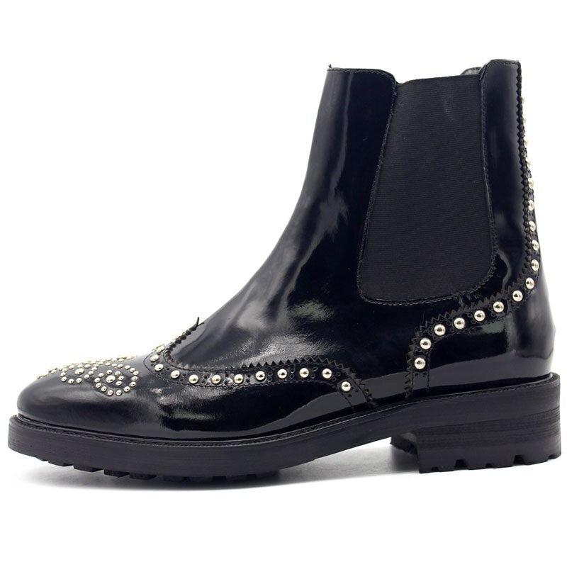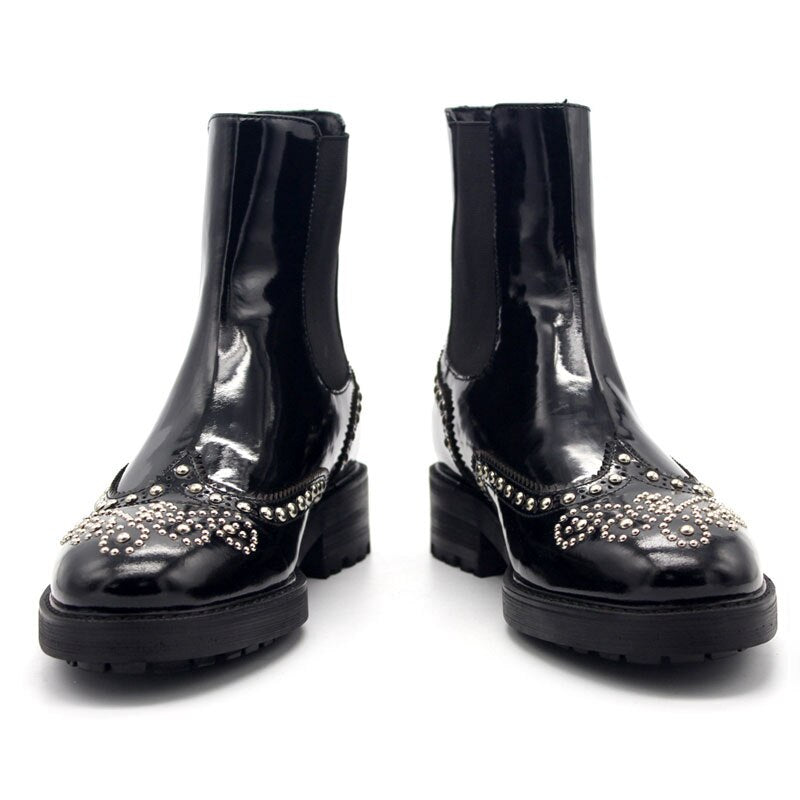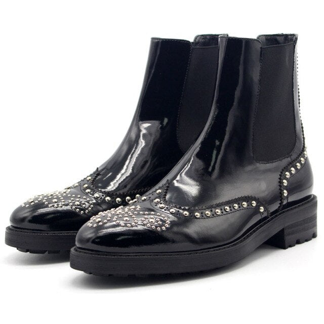 Mens Punk Rivet Slip On Chelsea Boots Brogue Handmade