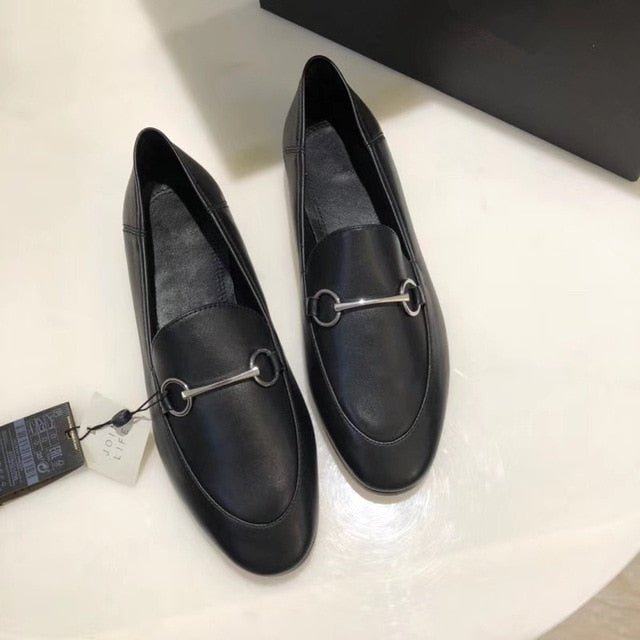 Withered 2020shoes women england style office lady simple solid genuine leather Sheepskin soft Lok shoes loafers shoes for women