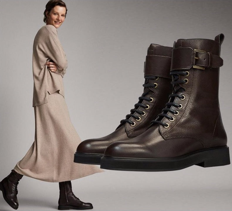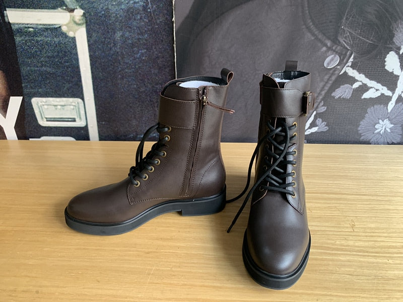 Withered england retro high street fashion cowhide soft zippers High top Martin boots women shoes woman botas mujer shoes women
