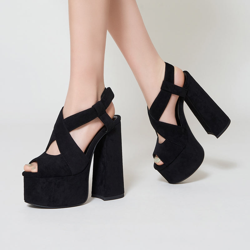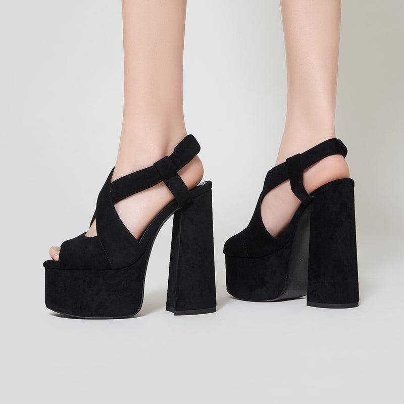 Women 14CM heels Sandals Platform Square Head