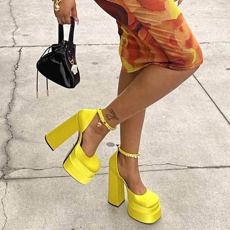 Women High Heel Rhinestone Crude Heel Buckle Wedding Party Shoes