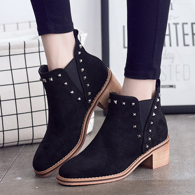 Women Ankle Boots Heels Shoes Fashion Rivet High Quality Boots