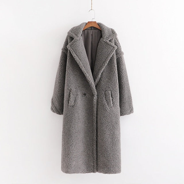 Women Beige Teddy Coat Thick Warm Cashmere Jacket