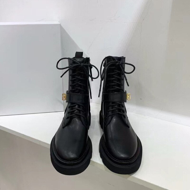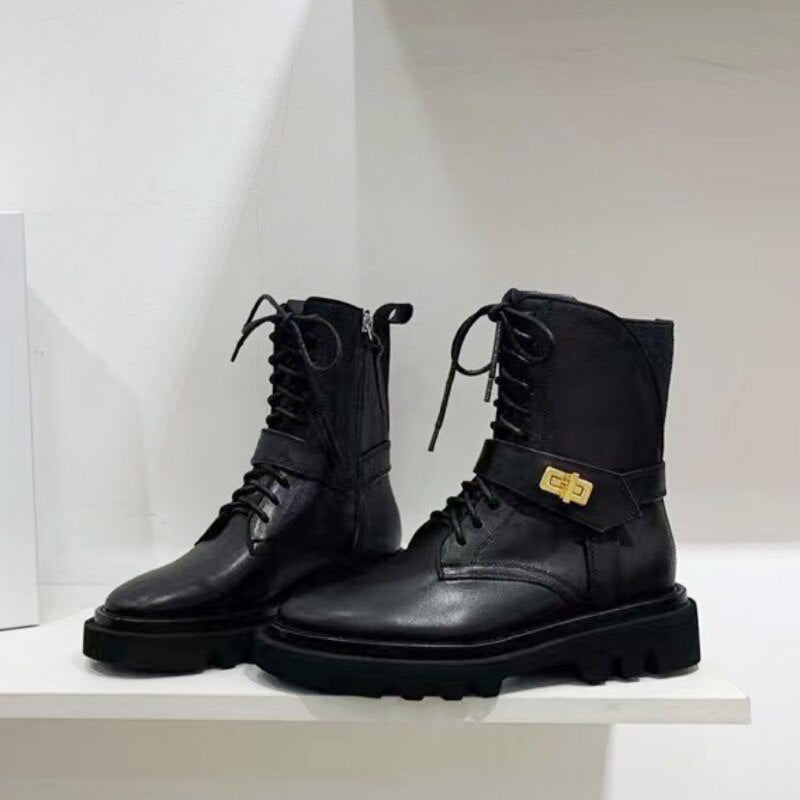 women Black Eden turn-lock Motorcycle Ankle Boots