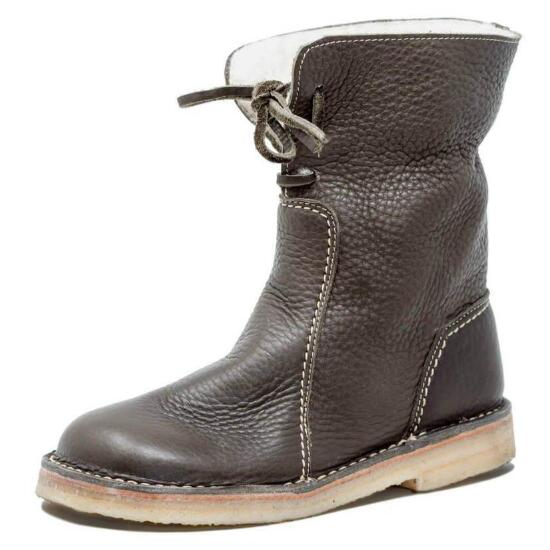Women Boots Suede Round Toe Buckle Strap Flat Shoes Keep Warm Snow Boots