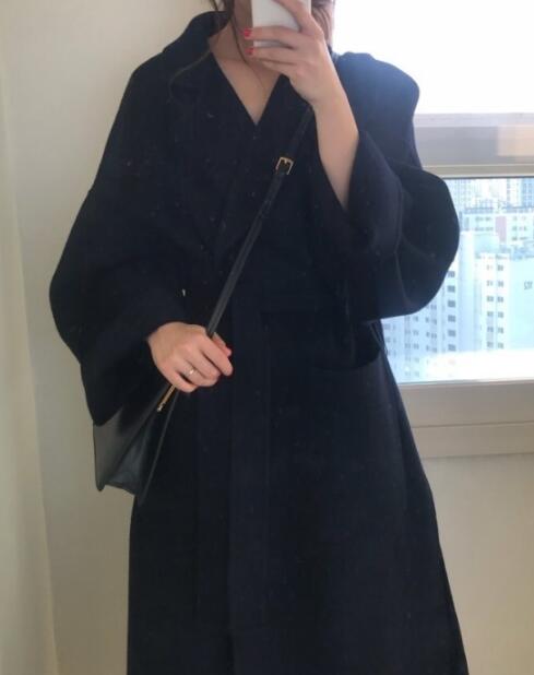 Women Elegant Winter wool Overcoat Long Bandage Woolen Coat