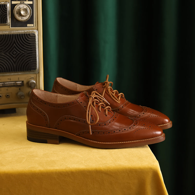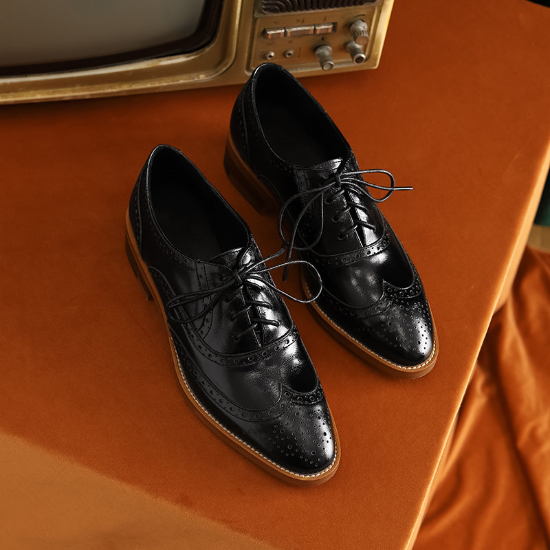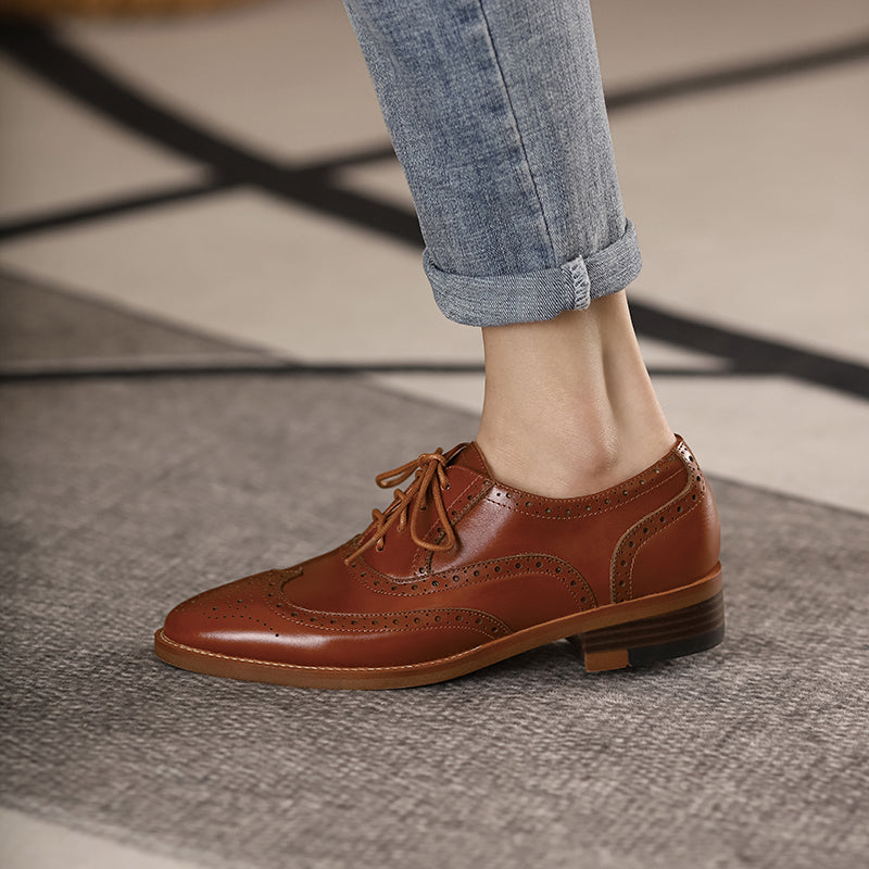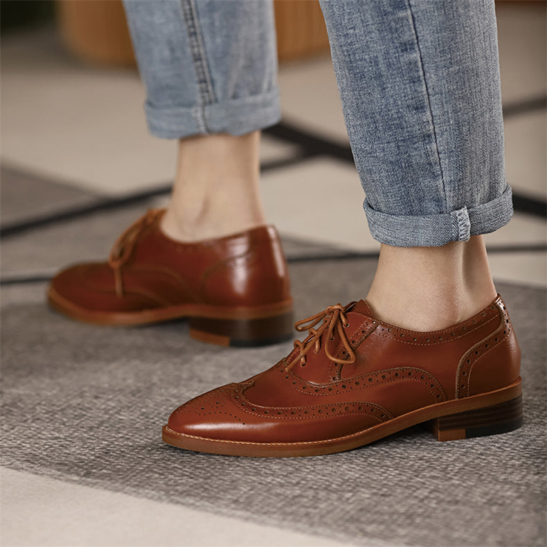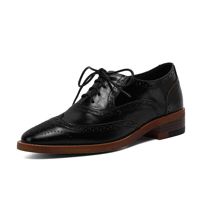 Women Genuine Leather Flats Oxfords Shoes