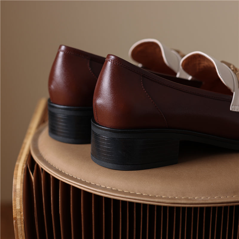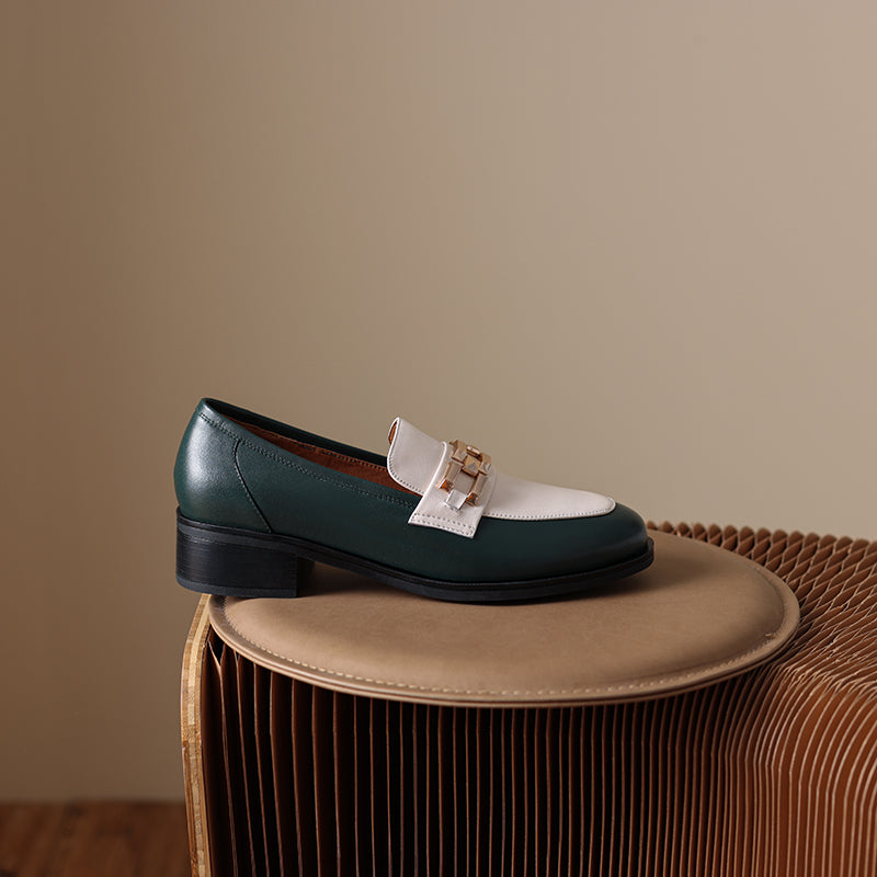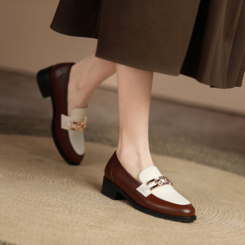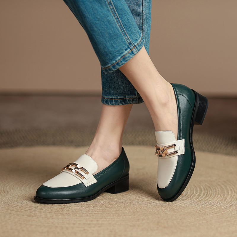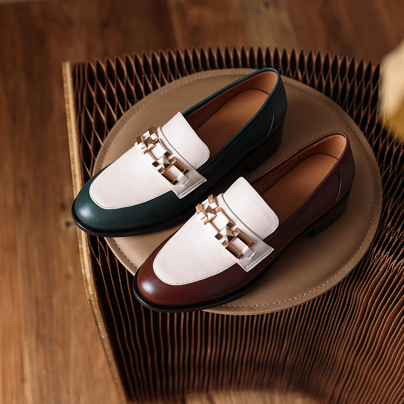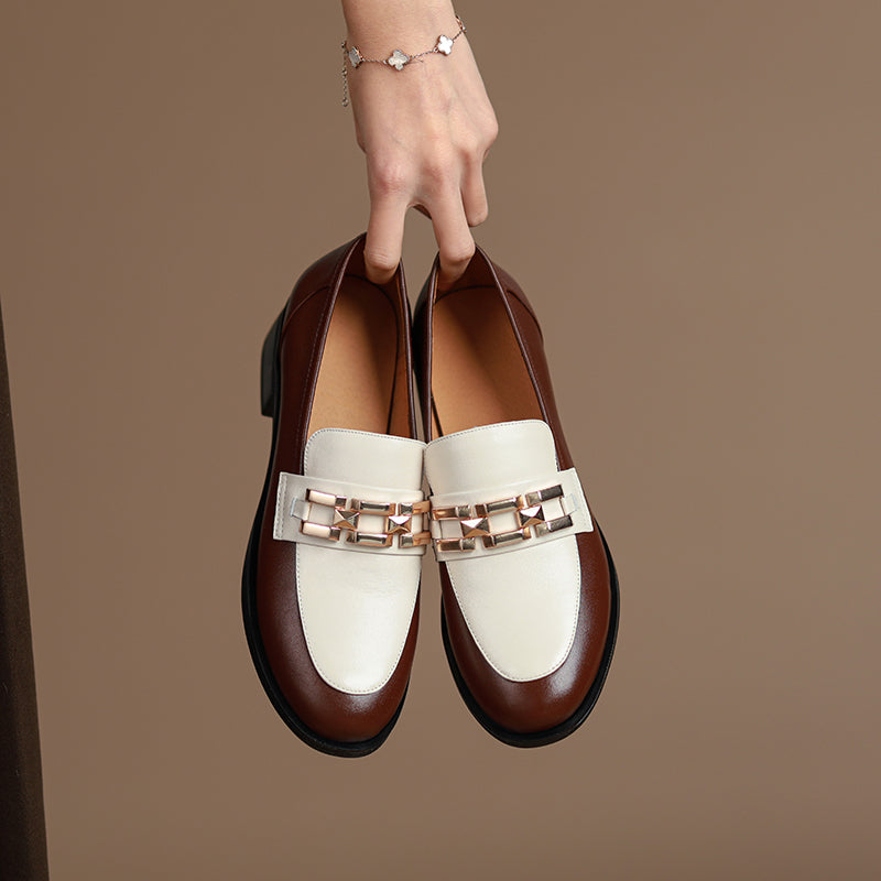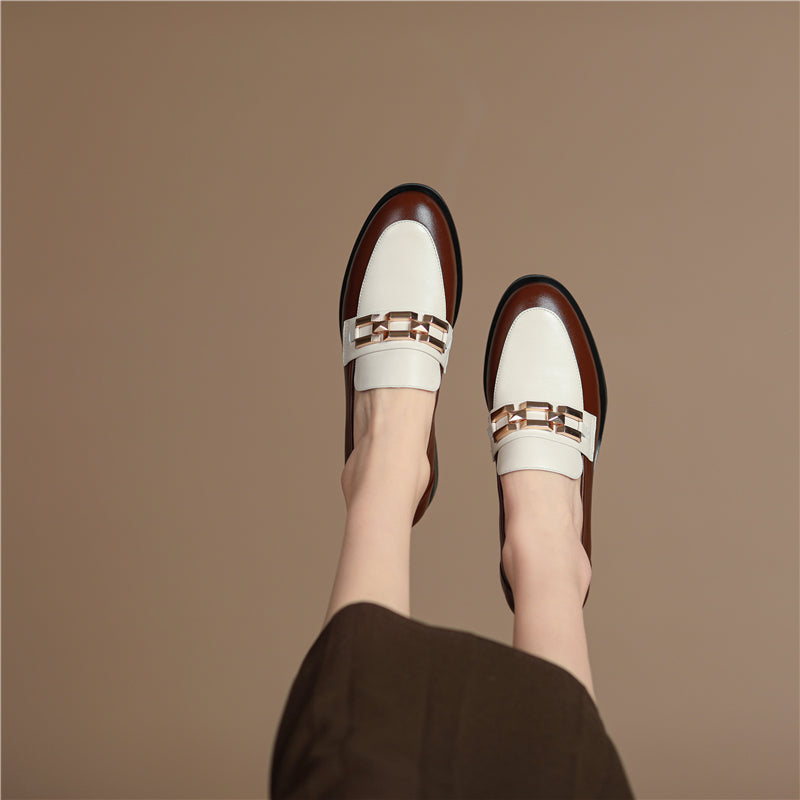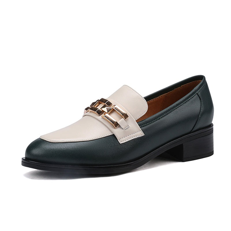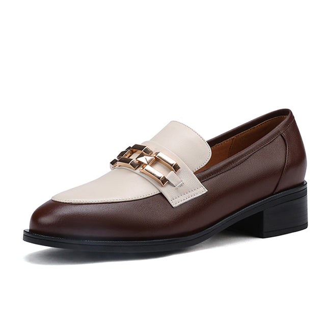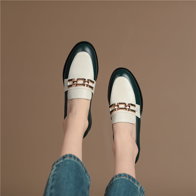 Women Genuine Leather Oxfords Shoes Hand-made Leisure Slip On Brogues Metal Decoration Shoes for Ladies Autumn Flat shoes 2022
