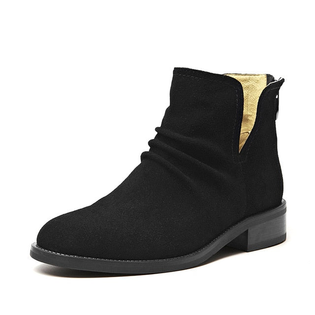 Women Genuine Leather Pleated Design Cow Suede shoes