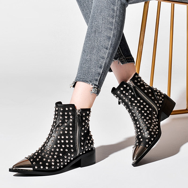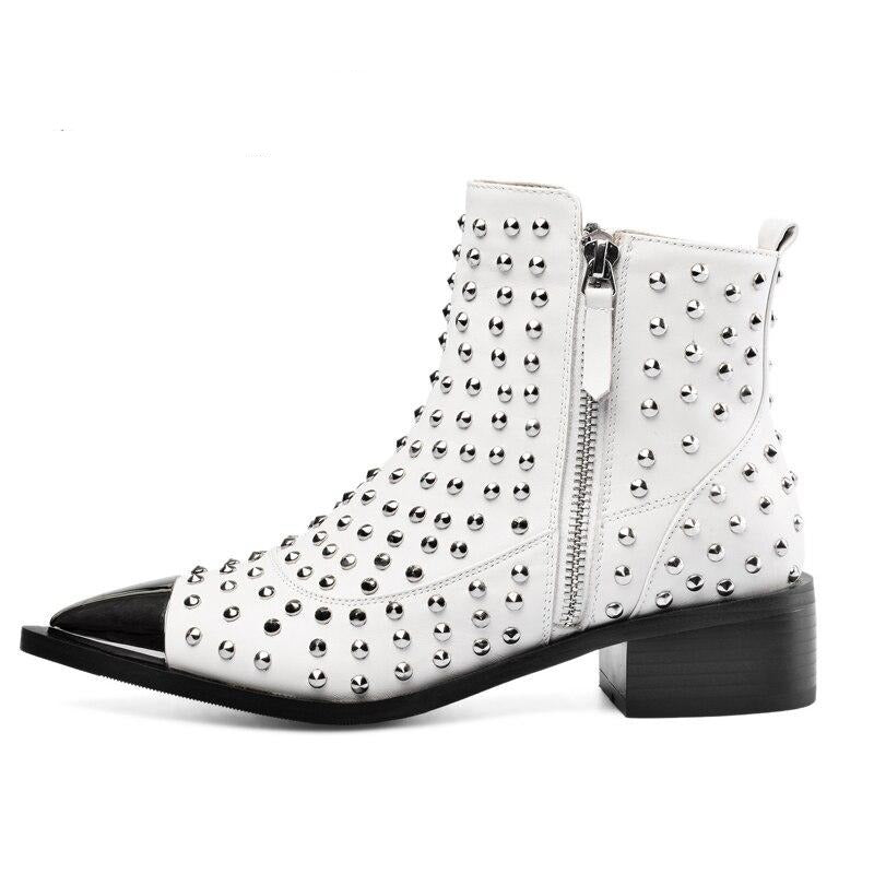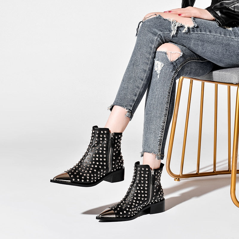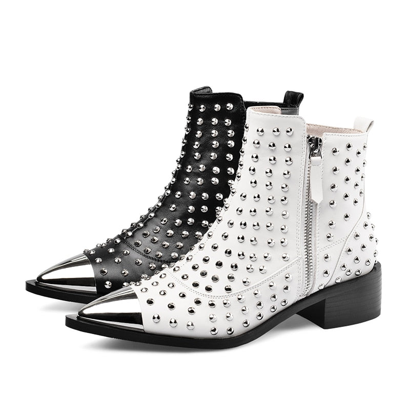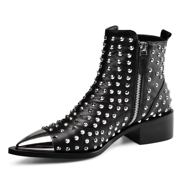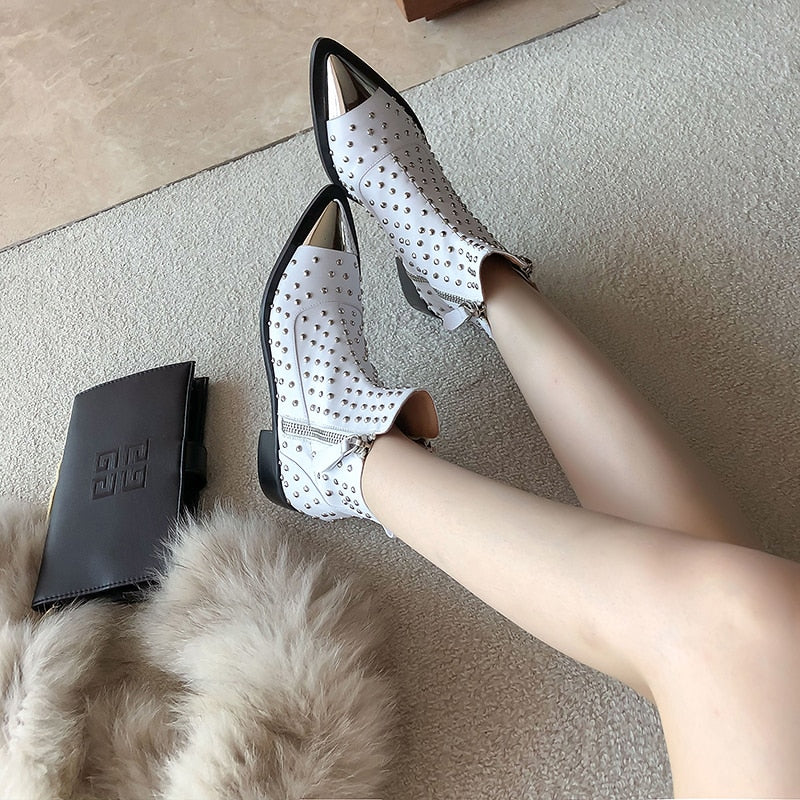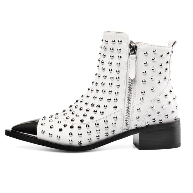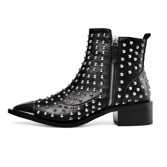 Women Genuine Leather Zipper Rivets Punk Ankle Boots