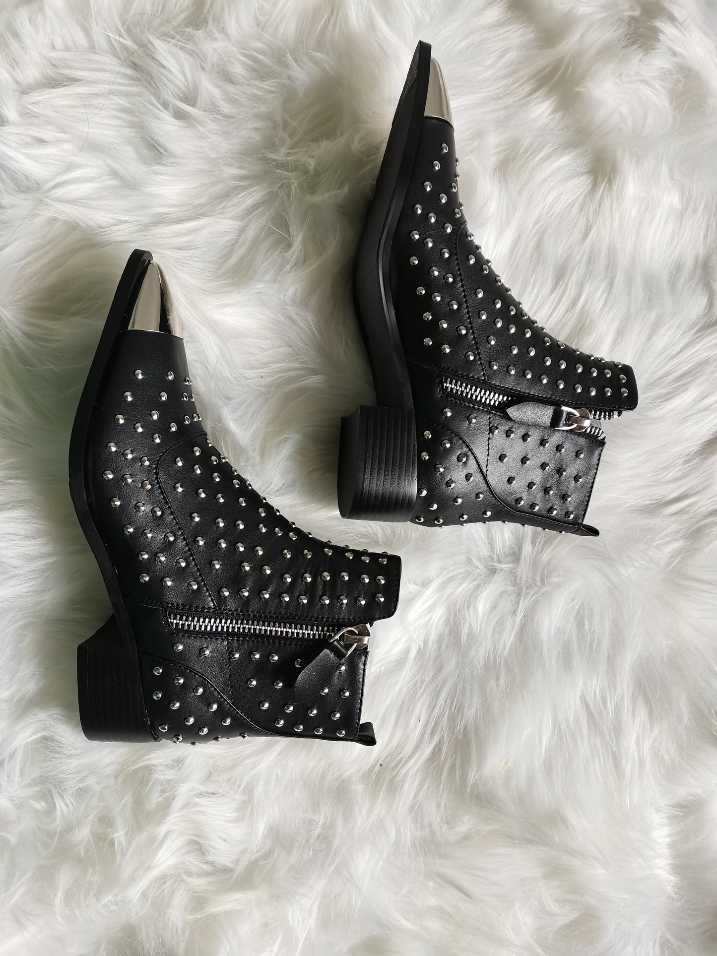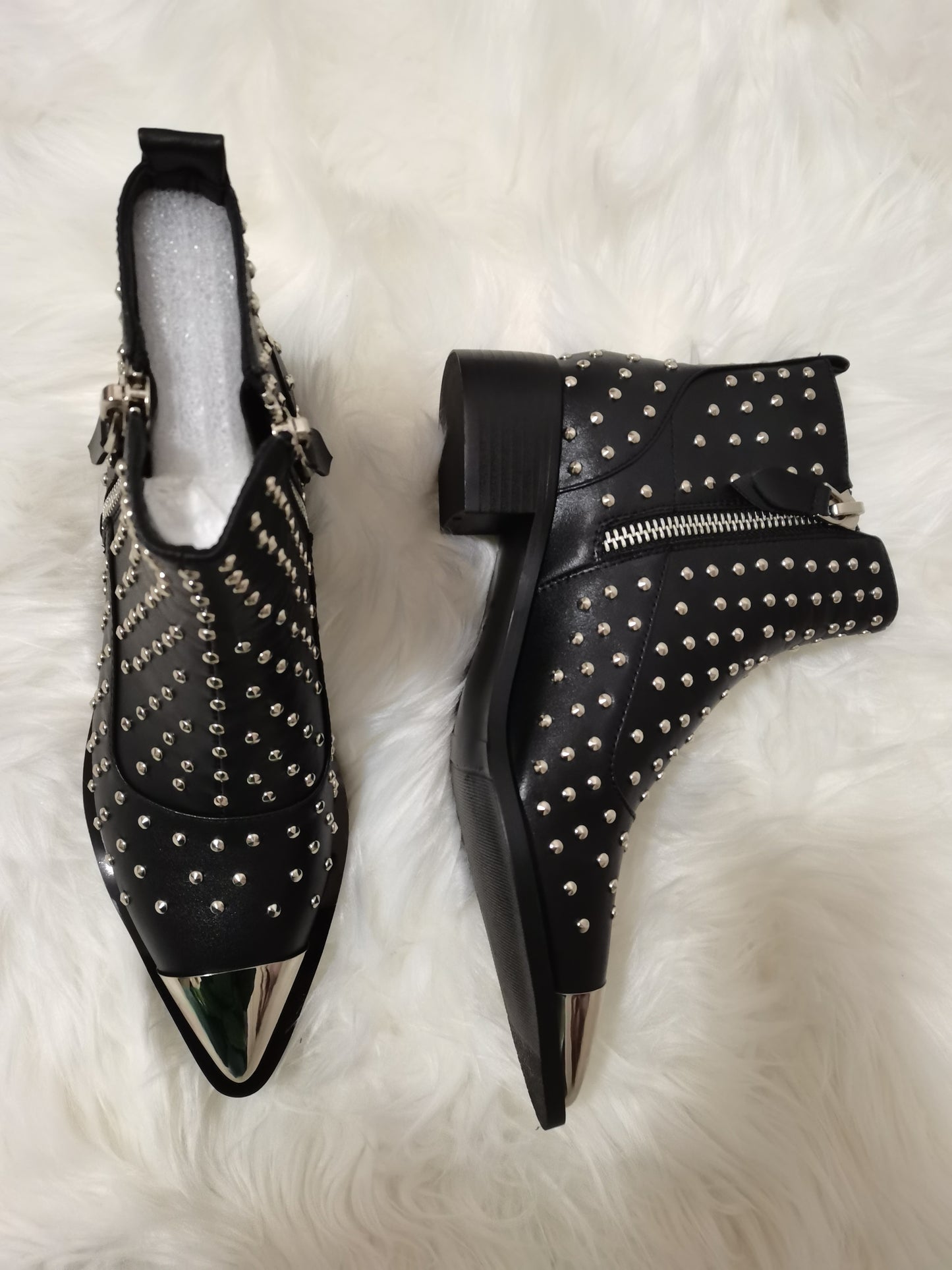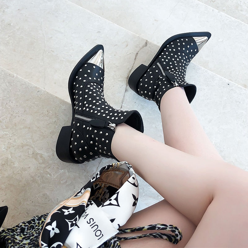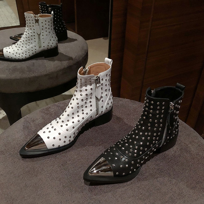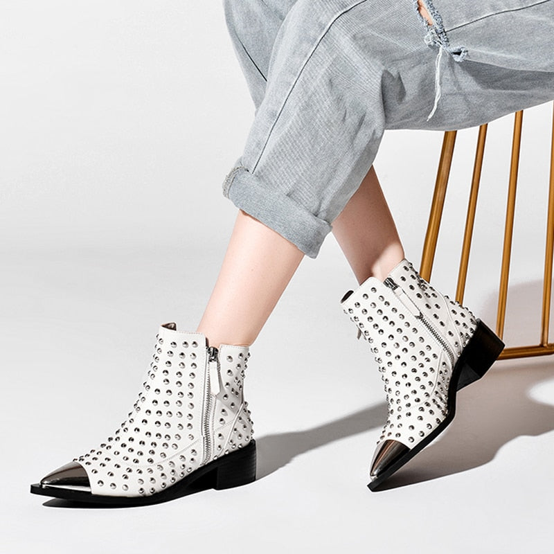 Women Genuine Leather Zipper Rivets Punk Ankle Boots