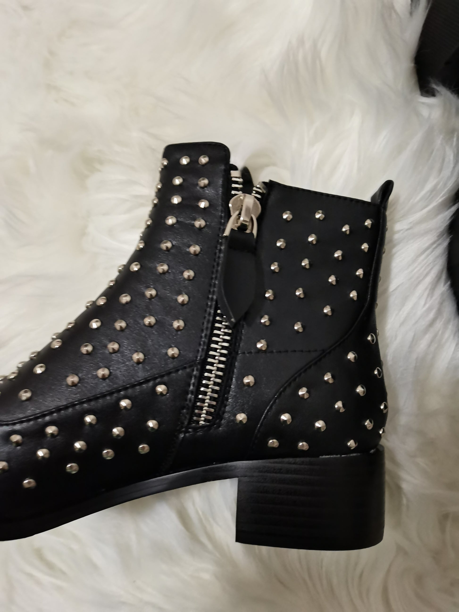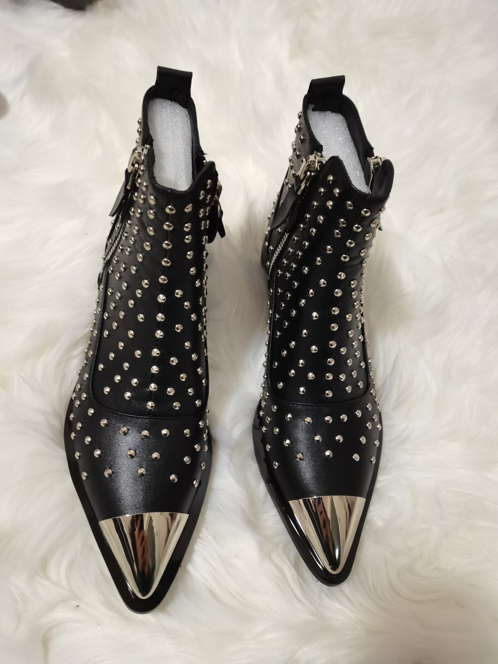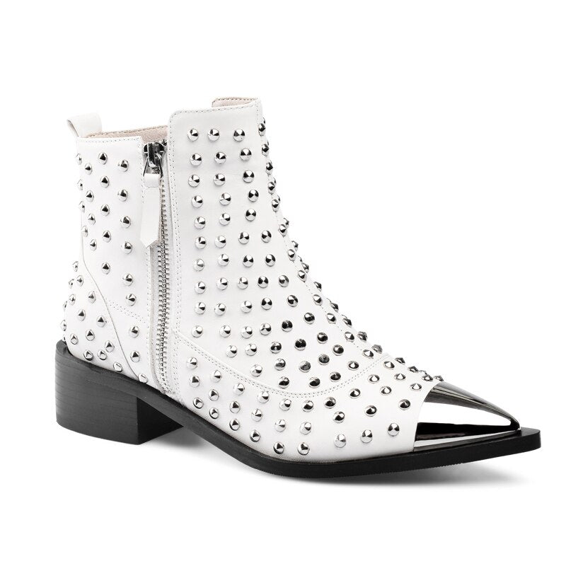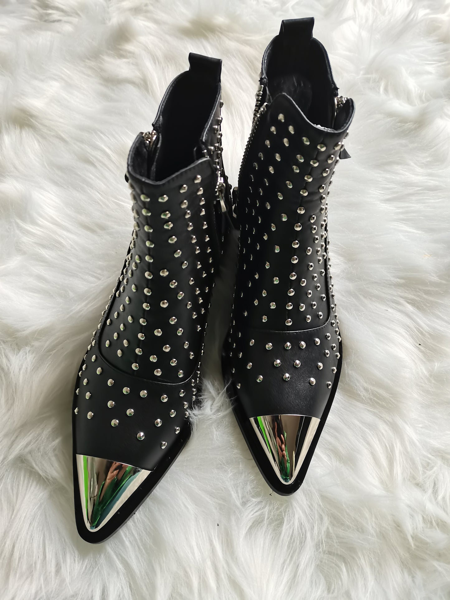 Women Genuine Leather Zipper Rivets Punk Ankle Boots
