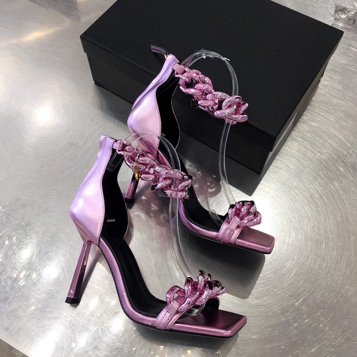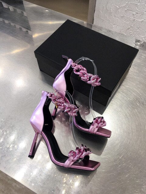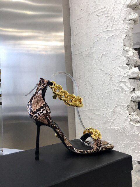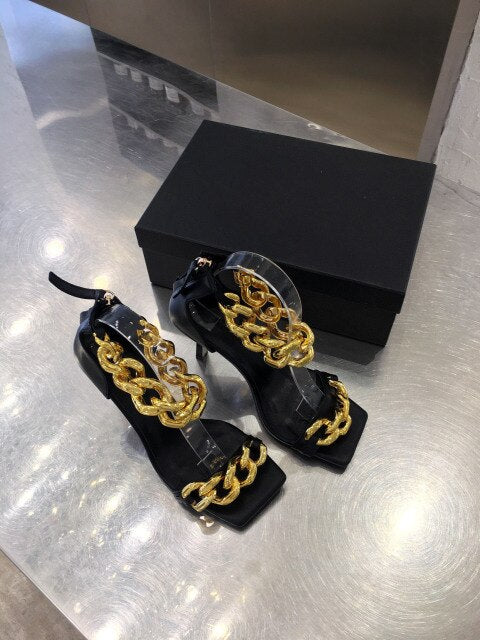 Women gold chain super high heel sandals