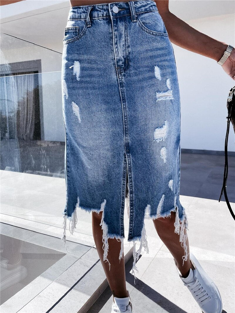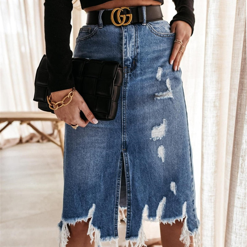 Women High Waist Denim Skirt