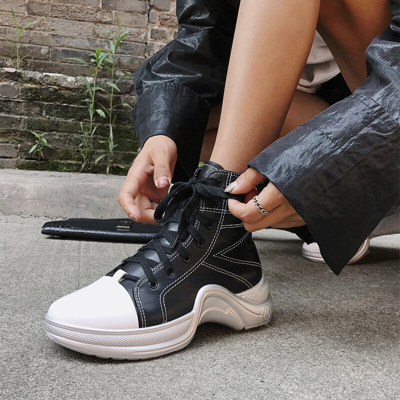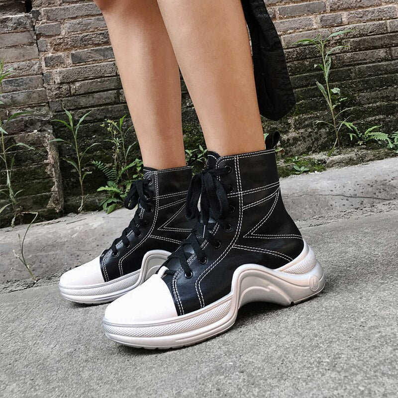Women Lace Up Platform Boots Thick Bottom