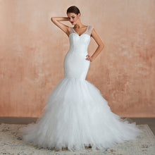Women Mermaid Wedding Dresses Ruffles Tulle Sweetheart Cap Sleeves Sequin Beaded Bridal Dress
