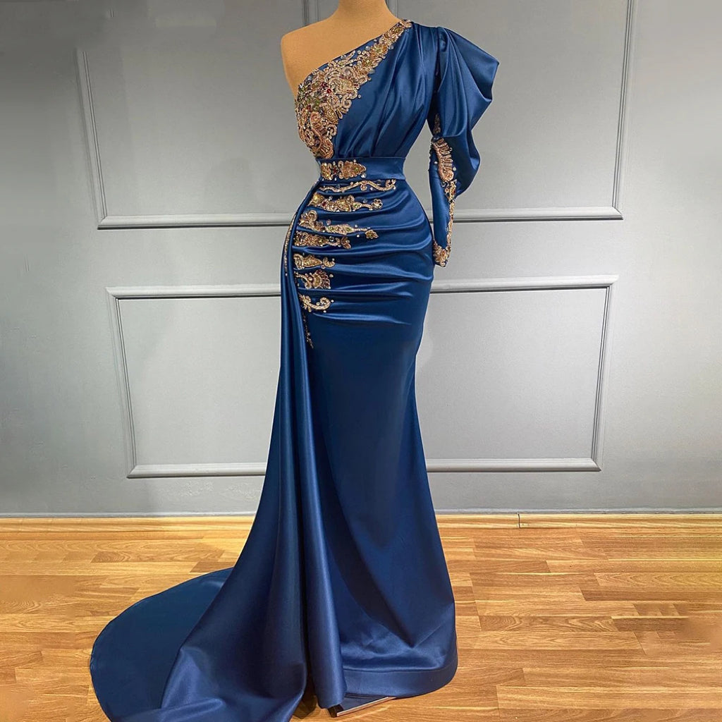 Women’s Beaded One-Shoulder Mermaid Evening Dress