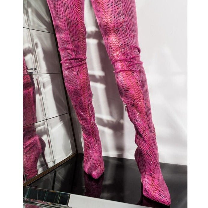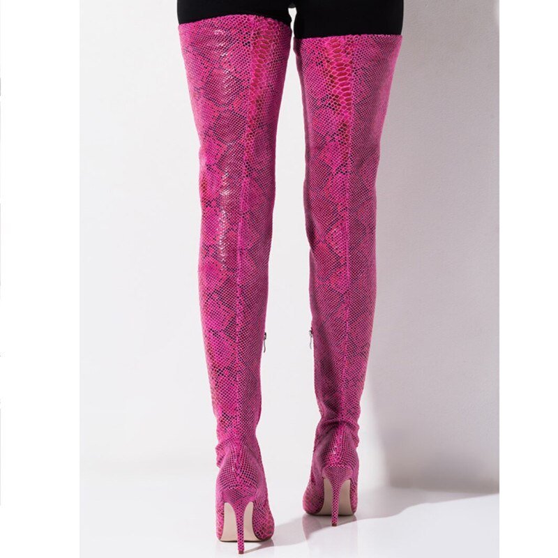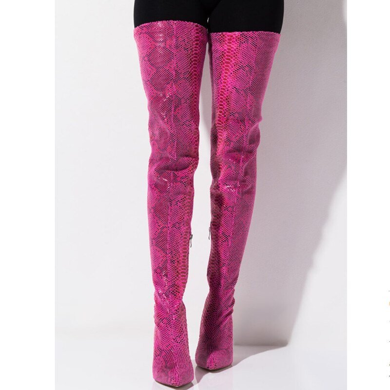 Women Sexy Side Zipper High Heels Thigh High Boots F