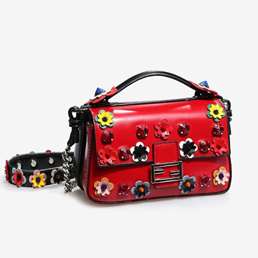 Women Shoulder Bags Flowers Patchwork Totes Red Mini Diamond Bags New Luxury Messenger Bags Crystal Bags Girls Small Purse