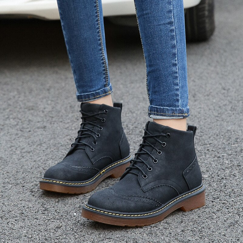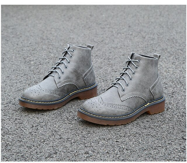 Women Solid Punk Motorcycle Boots Retro Casual Lace Up Shoes