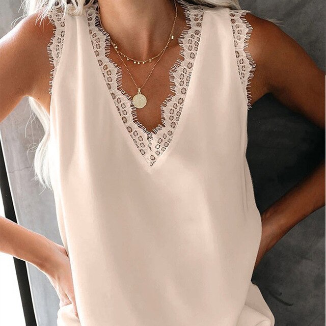 Style1: Chiffon Lace Patchwork Slim Sexy Tanks Women