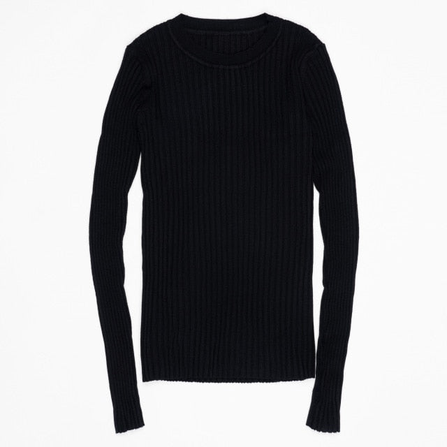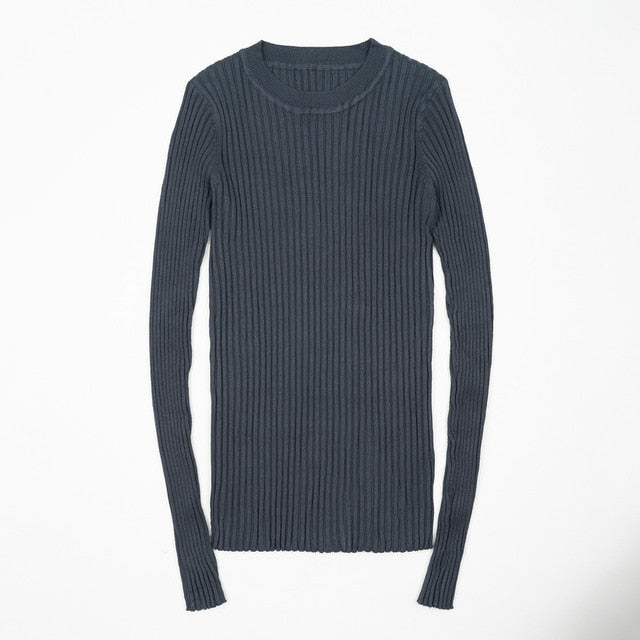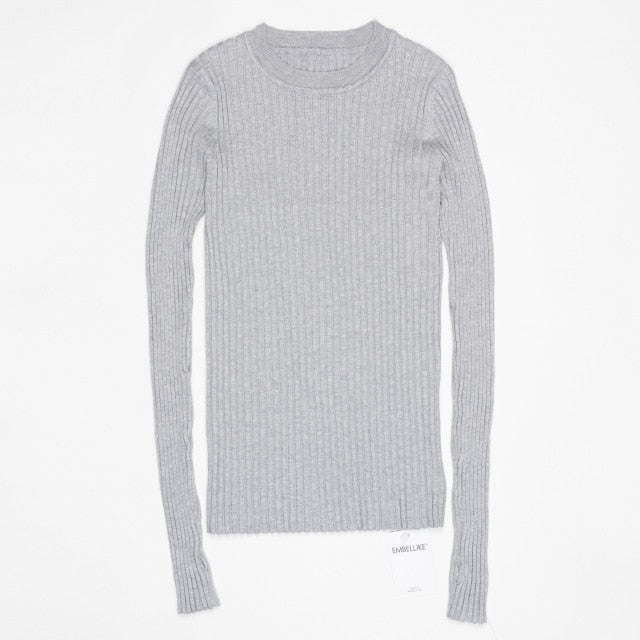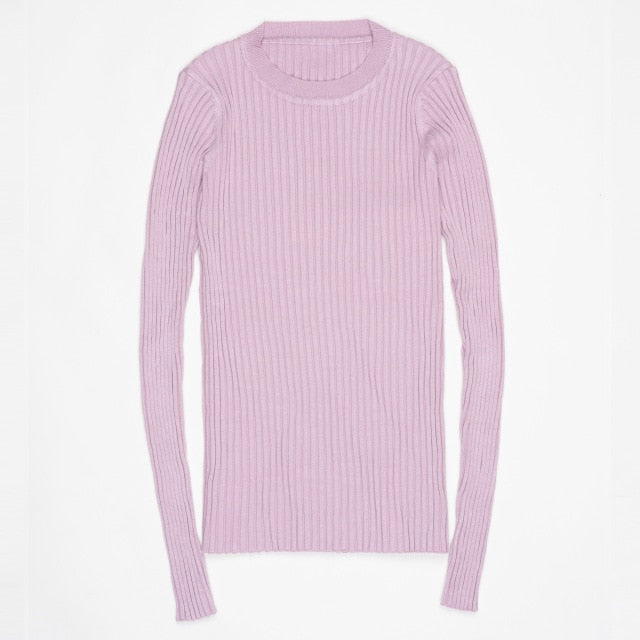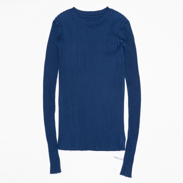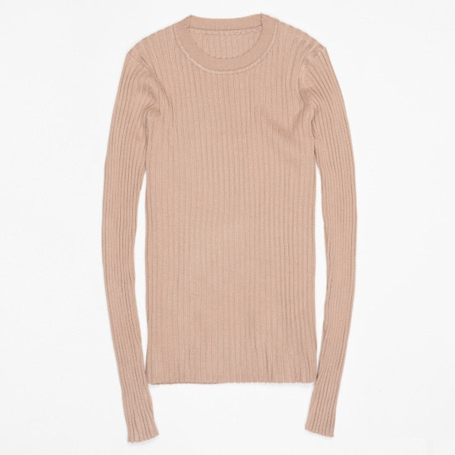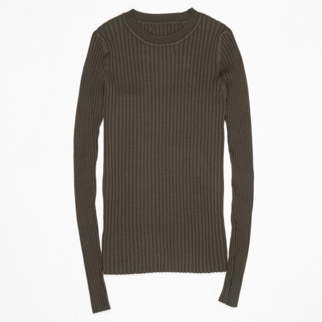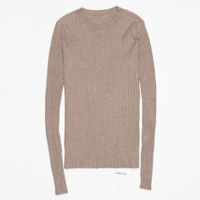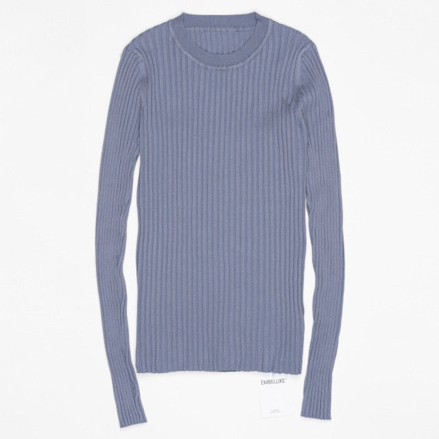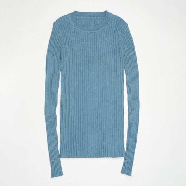 Women Sweater Pullover Basic Rib Knitted Cotton Tops