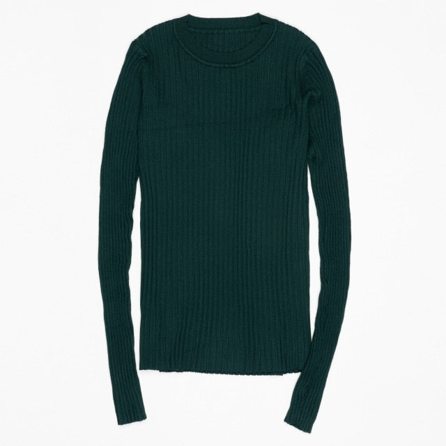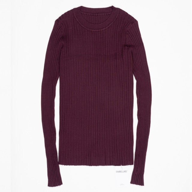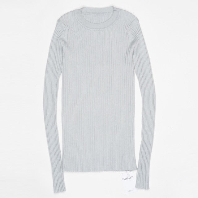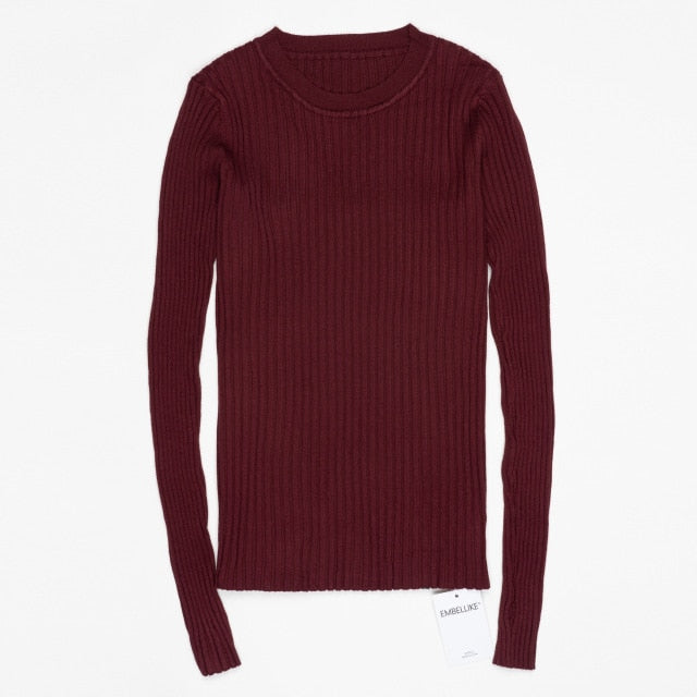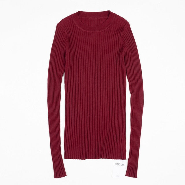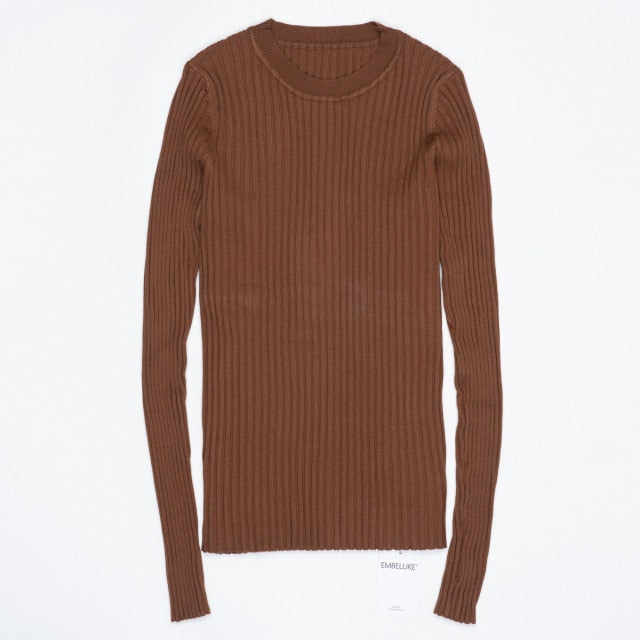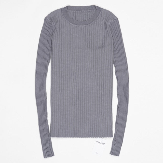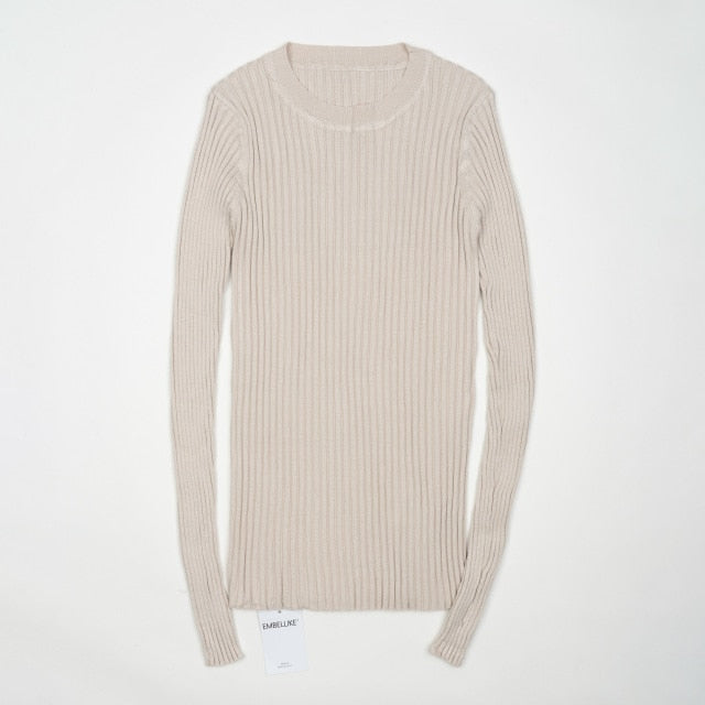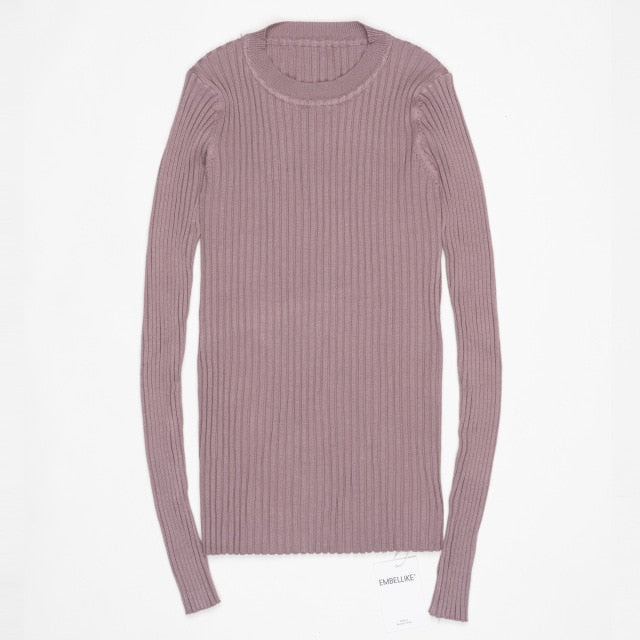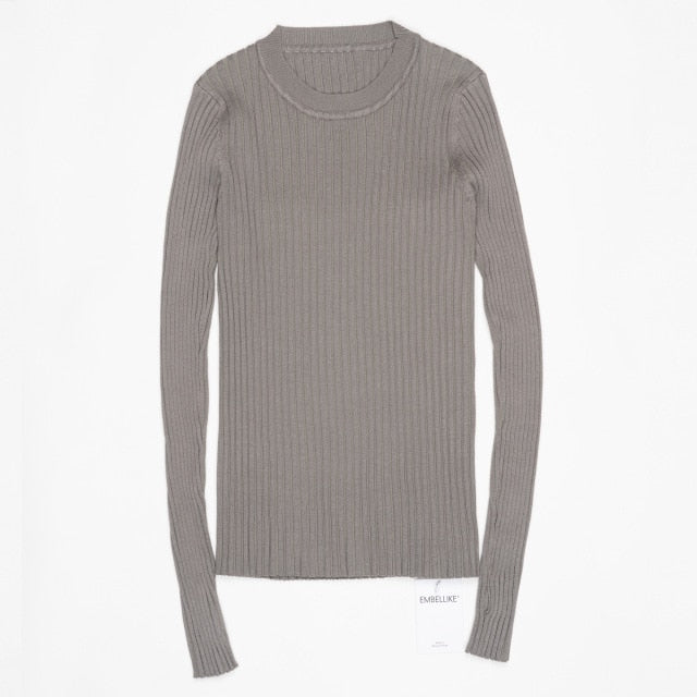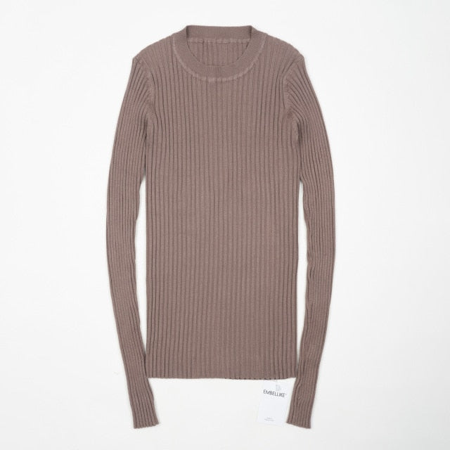 Women Sweater Pullover Basic Rib Knitted Cotton Tops