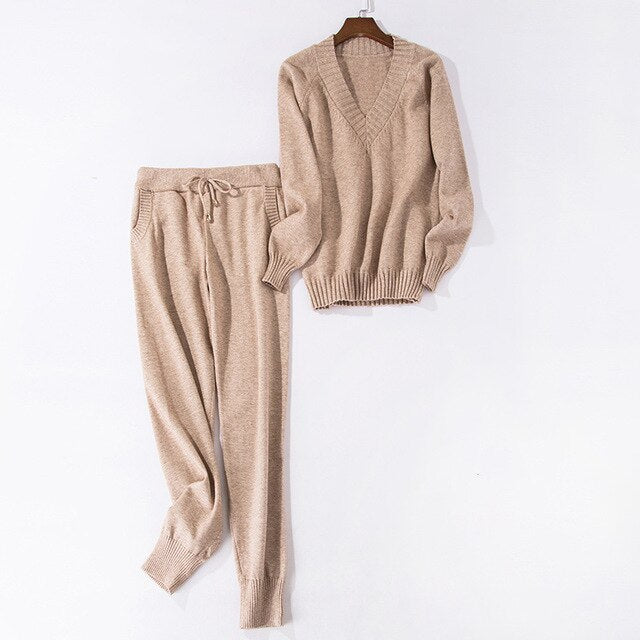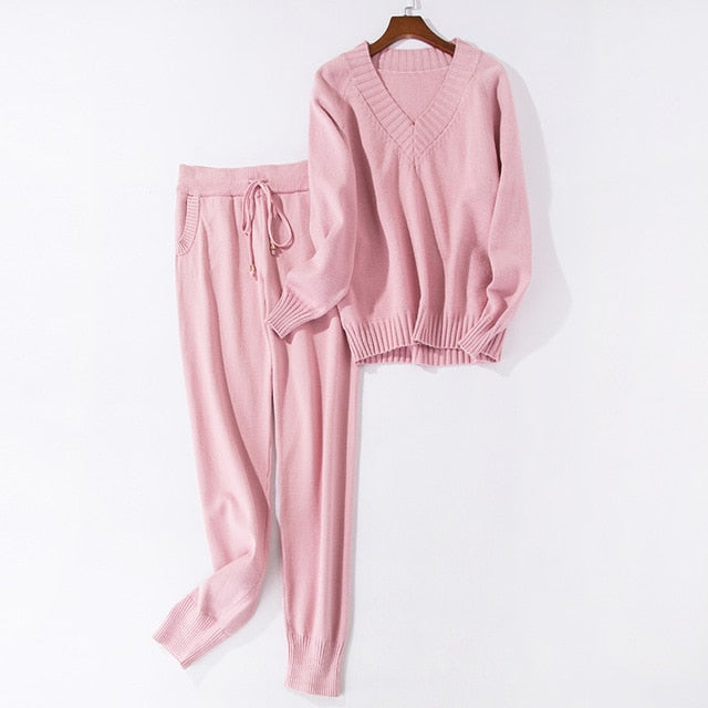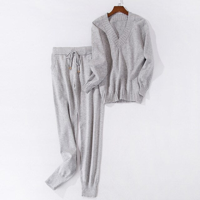 Women sweater suit and setsCasual Knitted Sweaters Pants 2PCS Track Suits Woman Casual Knitted Trousers+Jumper Tops Clothing Set