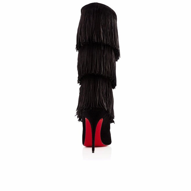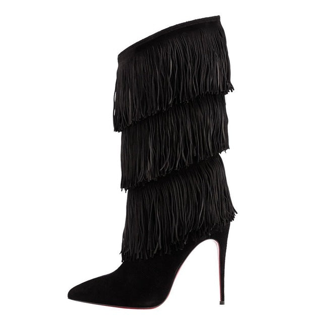 Women Tassel Boots Brown Black Pointed Toe High Heel Fringe Mid Calf Boots Stiletto Sexy Winter Shoes Large Size Street Style